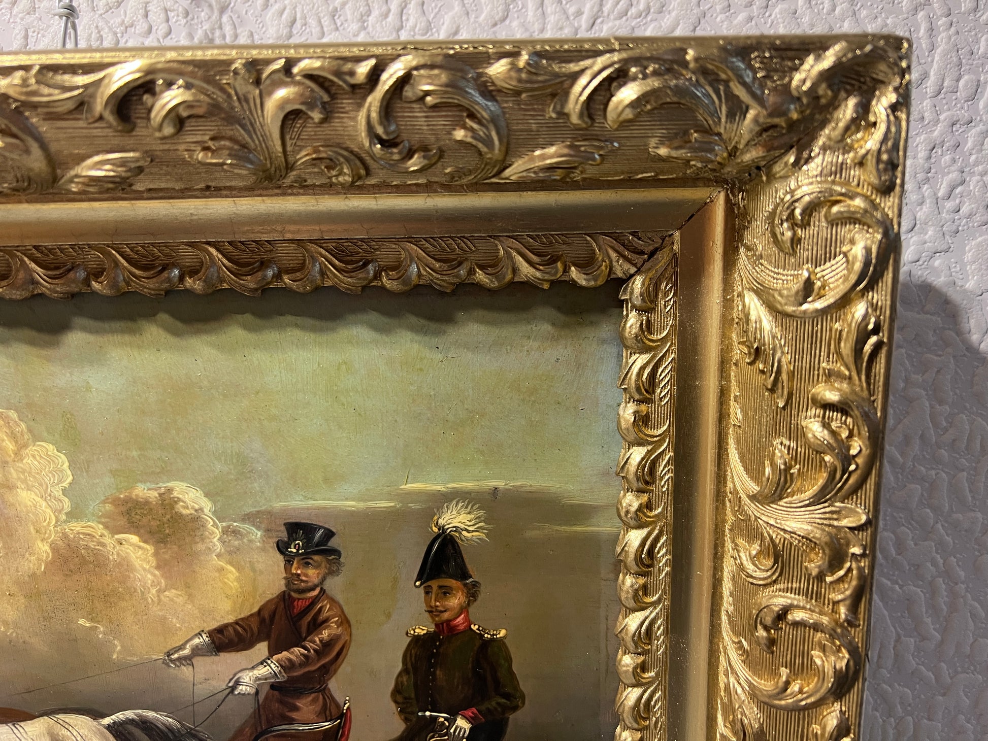 Housed in an ornate antique gold frame, this painting presents a beautifully preserved glimpse into 19th-century Russian aristocratic life and showcases Charlemagne’s fine detail, balance of composition, and expressive brushwork.