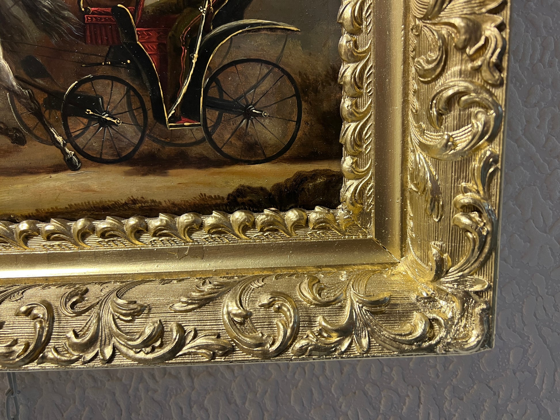 🎨 Original 1864 Oil Painting by Adolf Jossifowitsch Charlemagne – Russian Imperial Artist – Carriage Scene on Metal