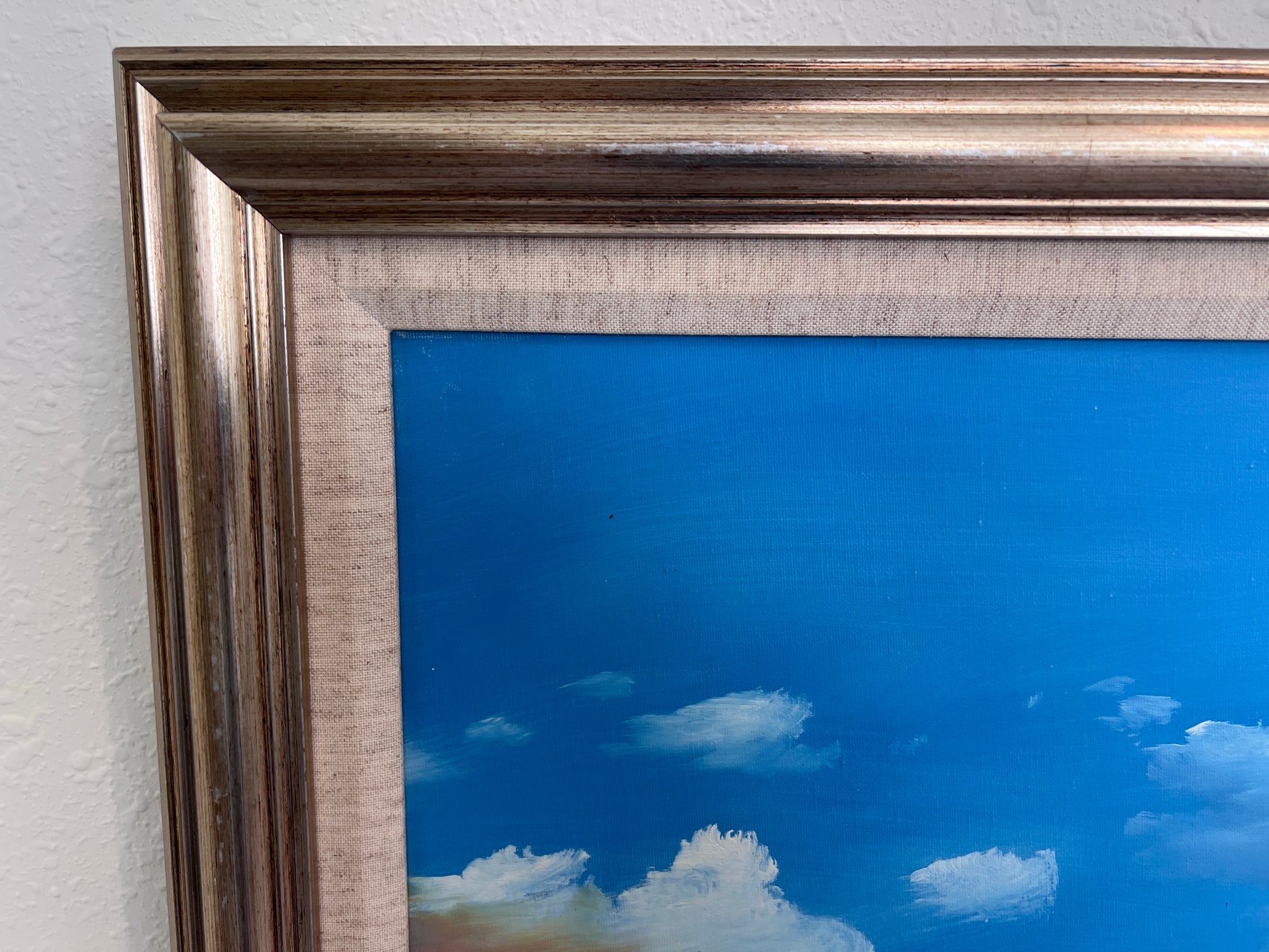 The painting is in good condition with vibrant color and no visible damage. The frame is also in good condition, showing only minimal signs of handling consistent with age. Please view all photos for close-up details.