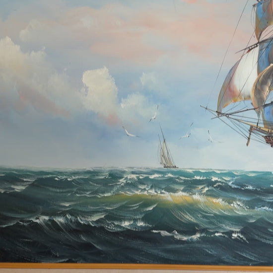 Ambrose Original Oil Painting Tall Ship at Sea Maritime Nautical Ocean Seascape