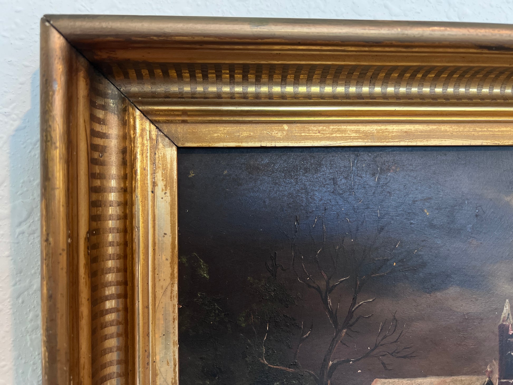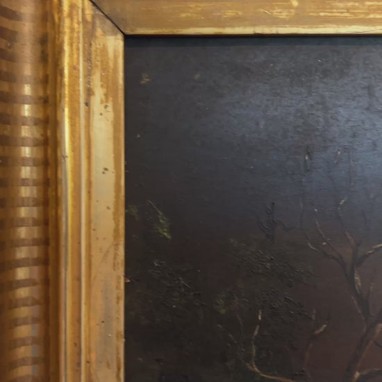 Good antique condition. Minor age wear, craquelure, and light surface marks consistent with age. Frame shows wear and gilt loss, adding authentic period character.