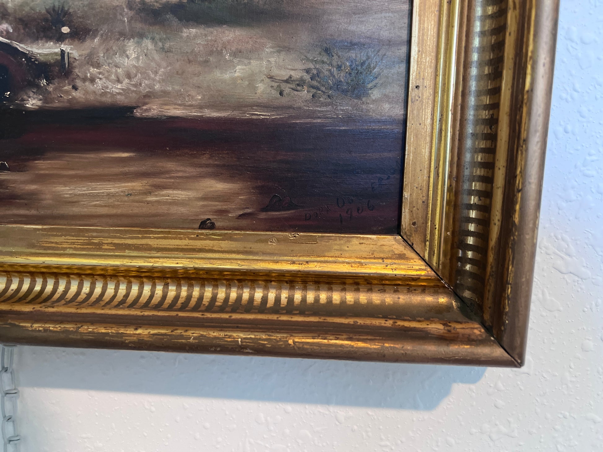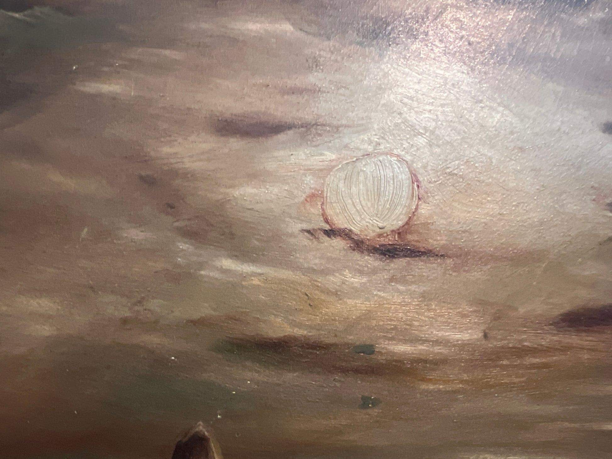 Antique 1906 Dutch Oil Painting Church Landscape Moonlit Scene Signed Framed