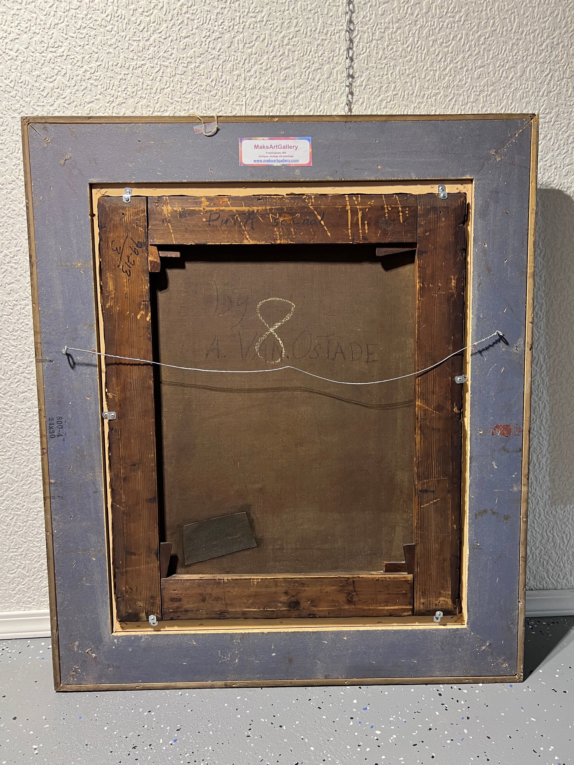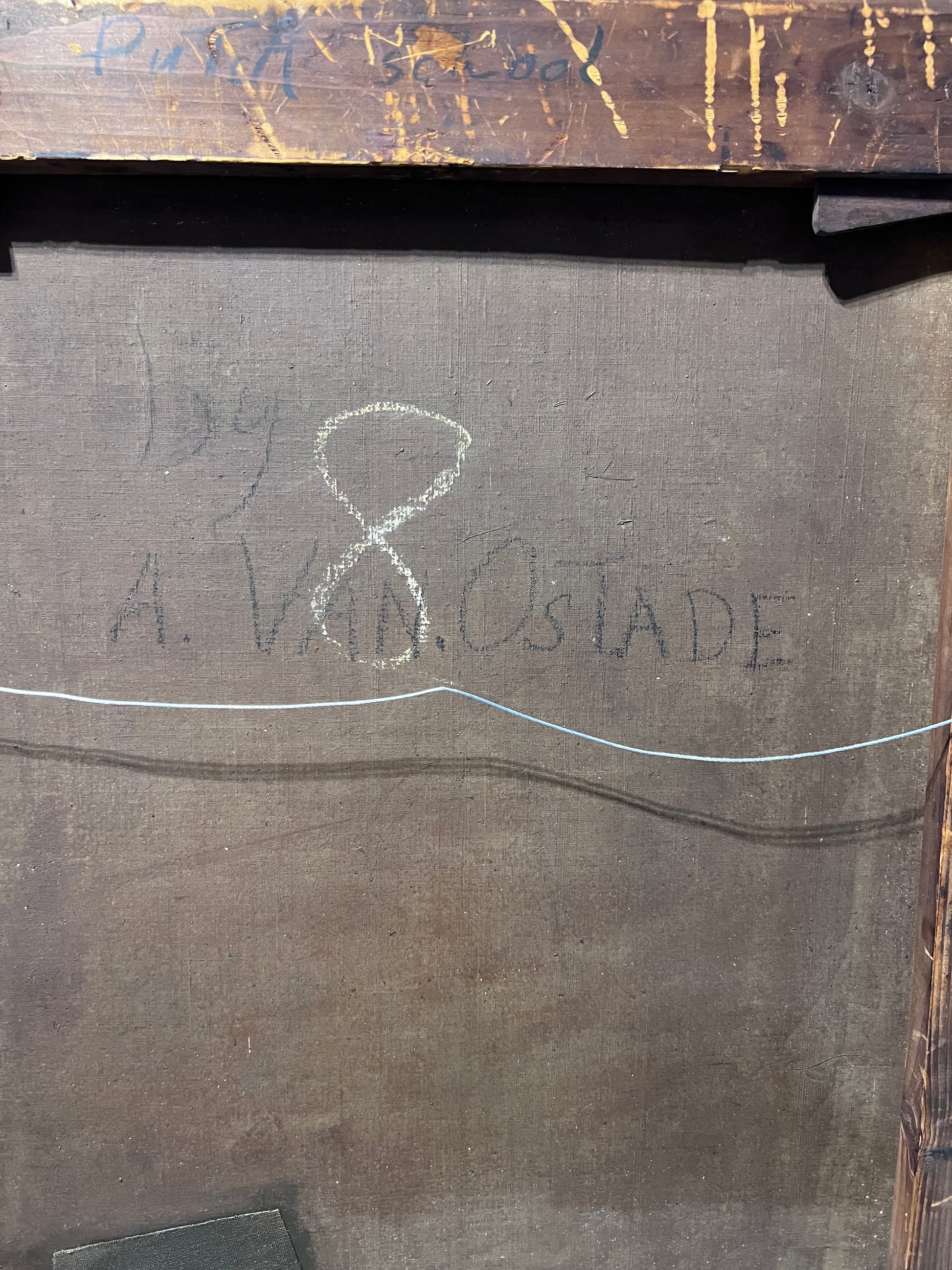 The back of the canvas bears the inscription "by A. van Ostade", though no visible signature is found on the front. The attribution is likely honorary or part of a later homage, a common practice in the 19th century when collectors and academies sought to emulate Dutch Masters.