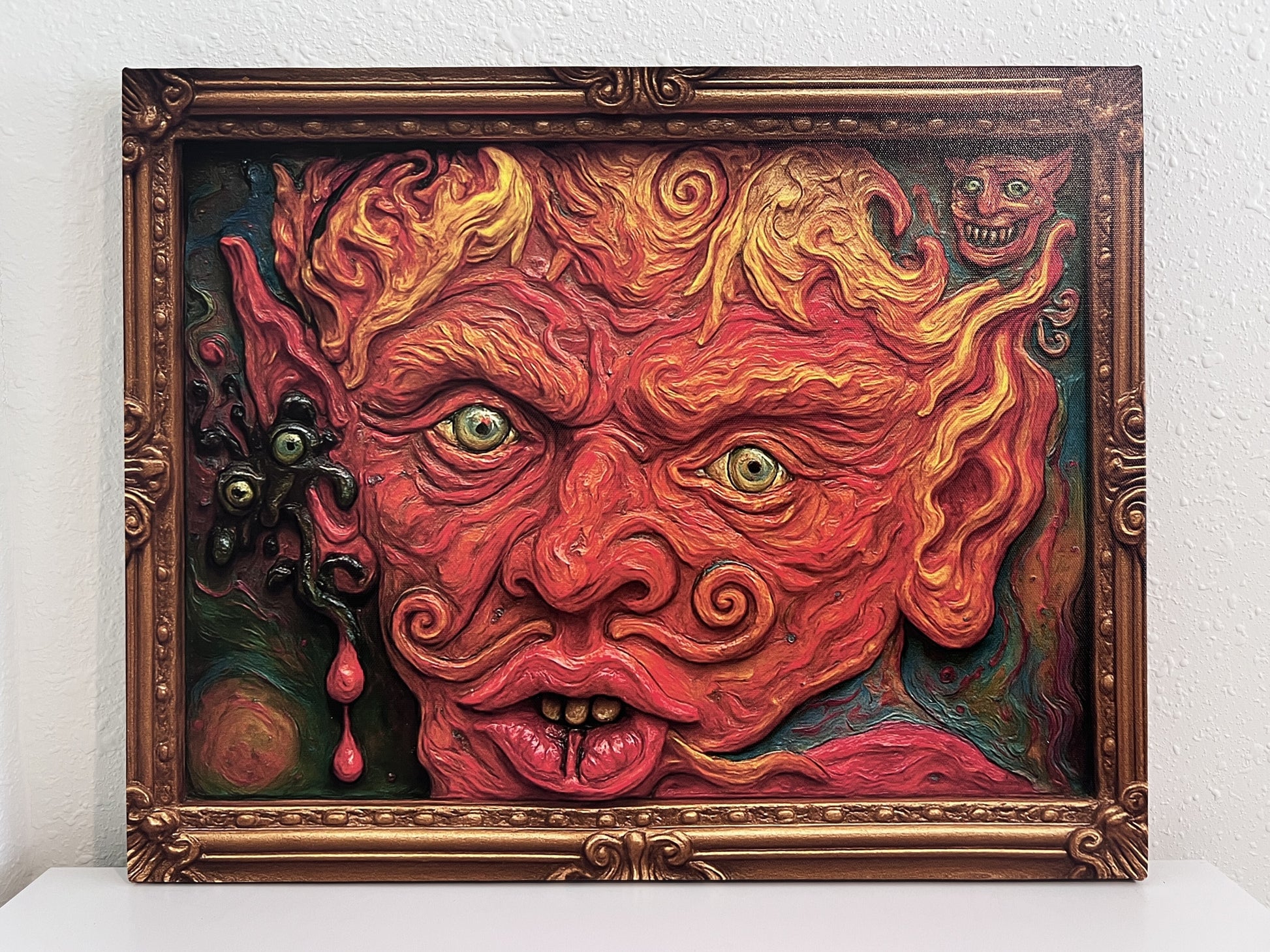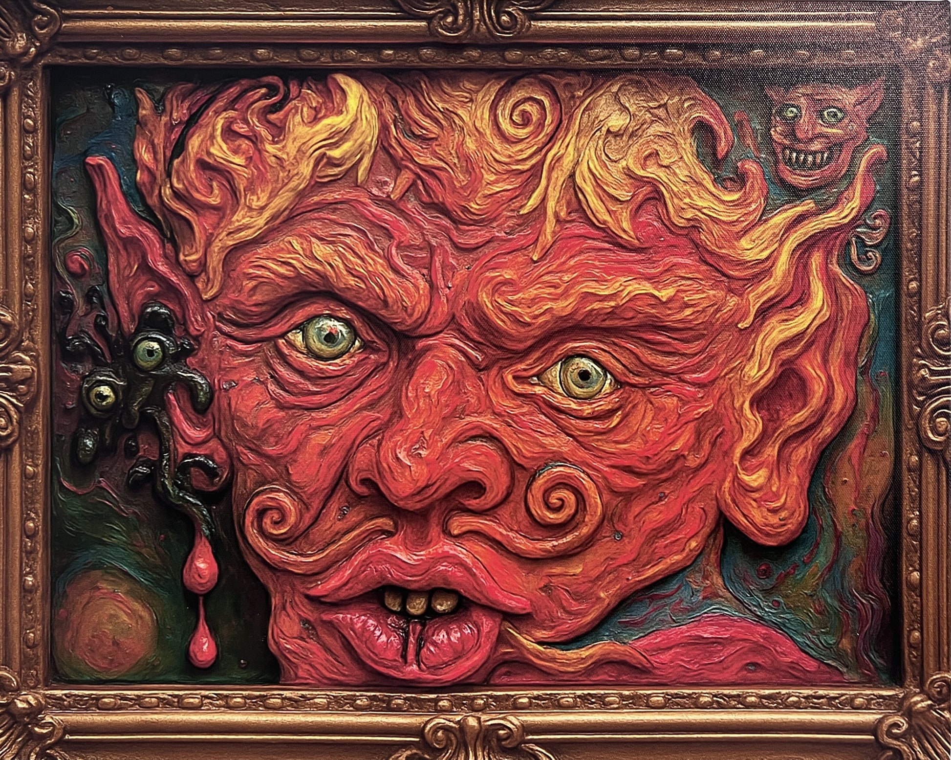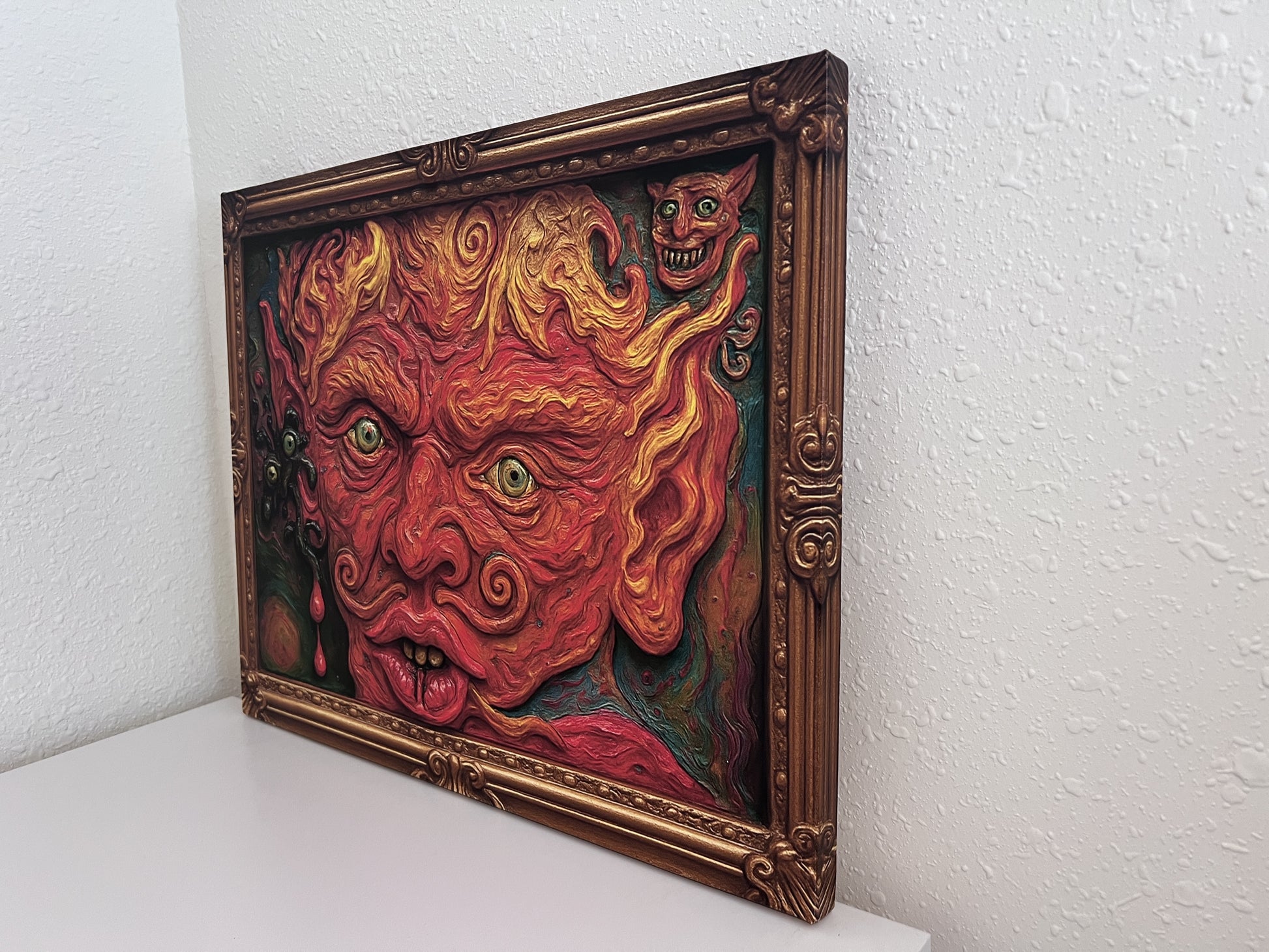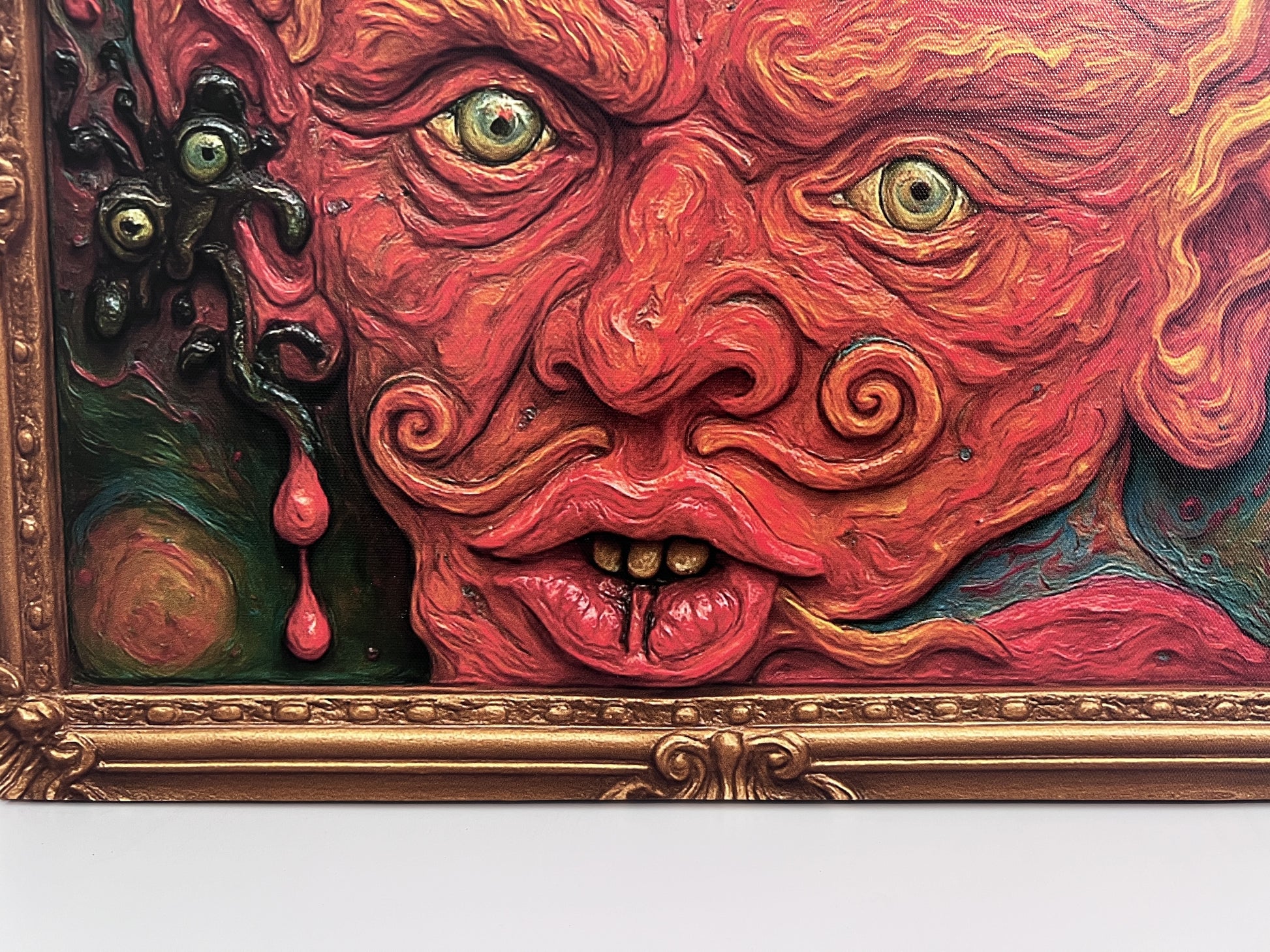 Bring home the haunting allure of surrealism with "Apocalypse" – a powerful 20" x 16" print on canvas by visionary artist Serg Graff. This bold and expressive artwork features a grotesque demon portrait that captures the raw emotion of chaos and transformation. Rendered in striking reds, golds, and shadowy greens, "Apocalypse" evokes themes of inner turmoil, myth, and otherworldly fire.