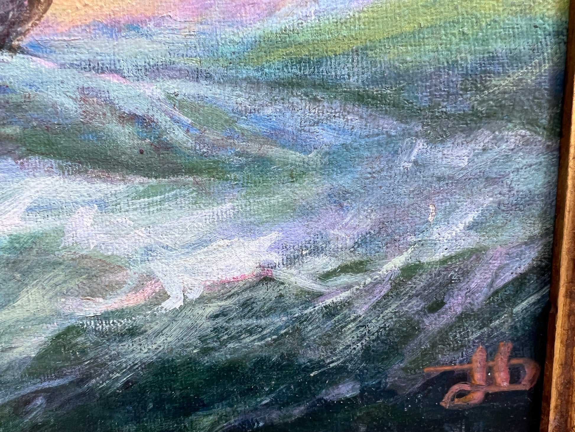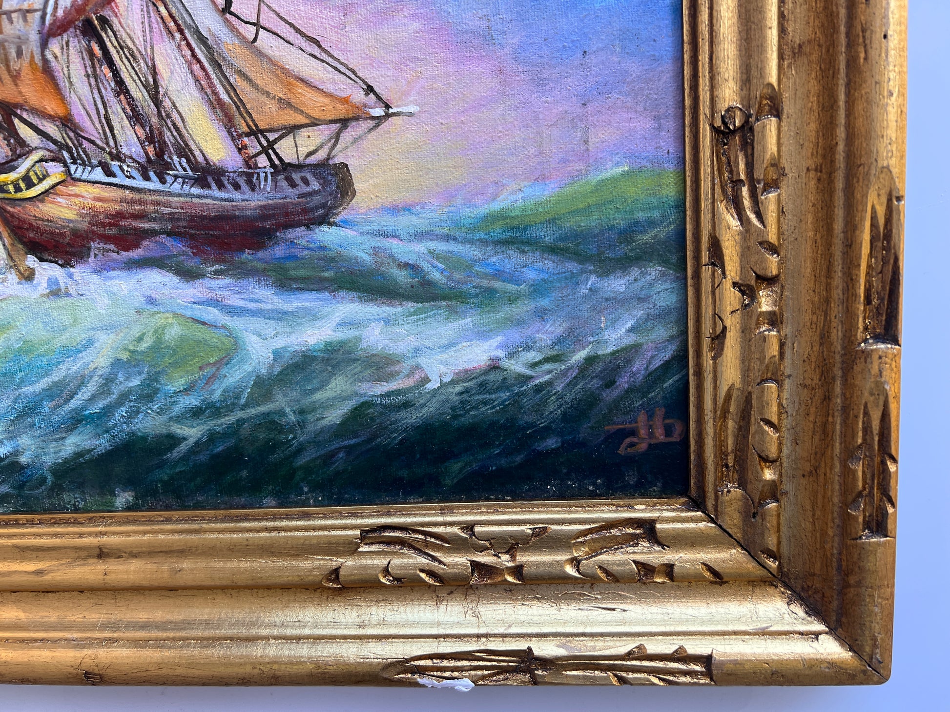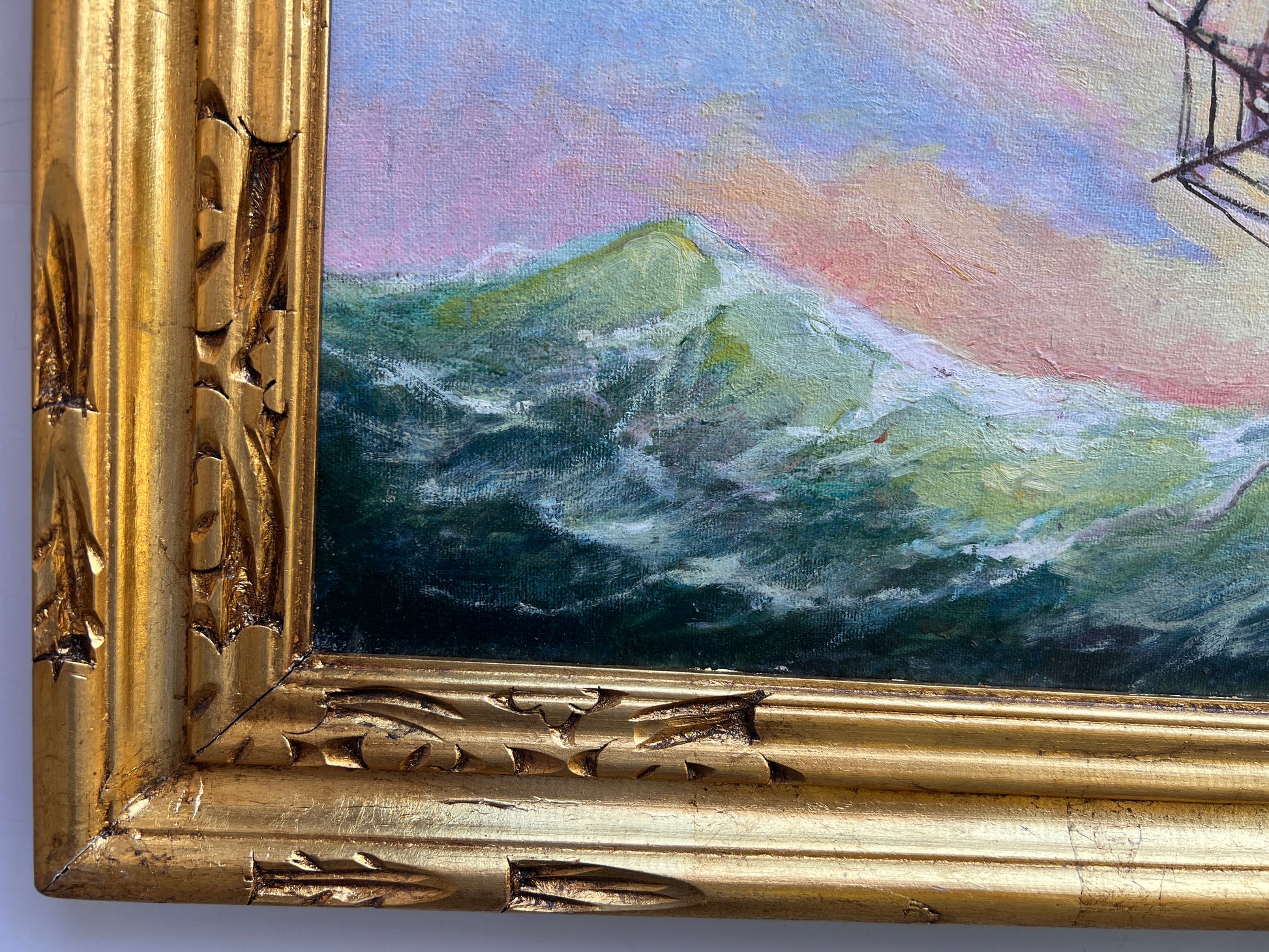 🖼️ Frame: Presented in a carved gold frame; frame has light scuffs consistent with age.