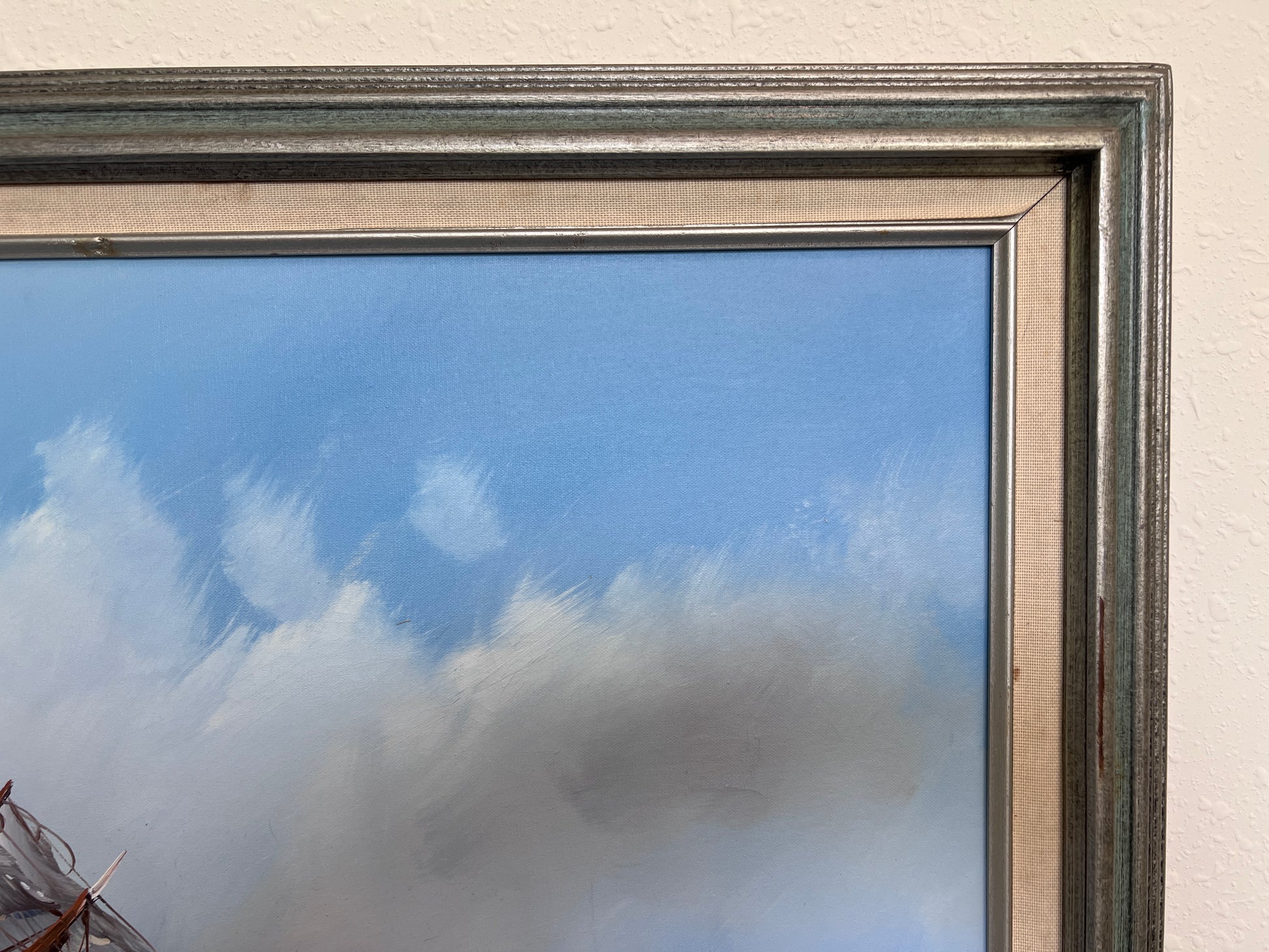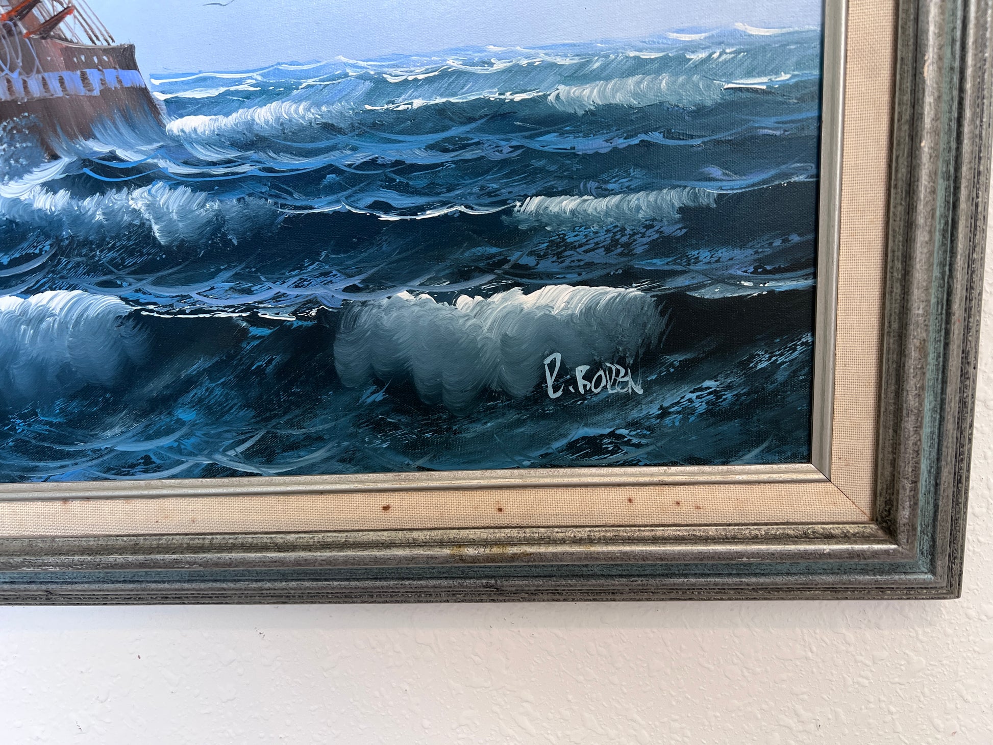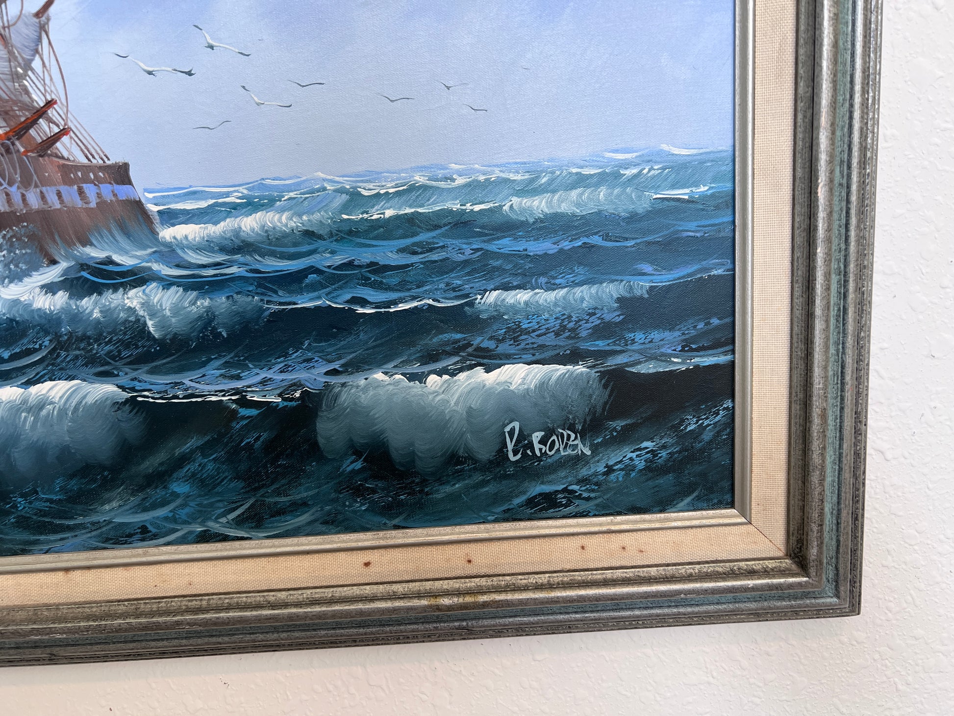R.Boren Large Original Oil Painting on Canvas Sailing Ship Ocean Seascape Framed