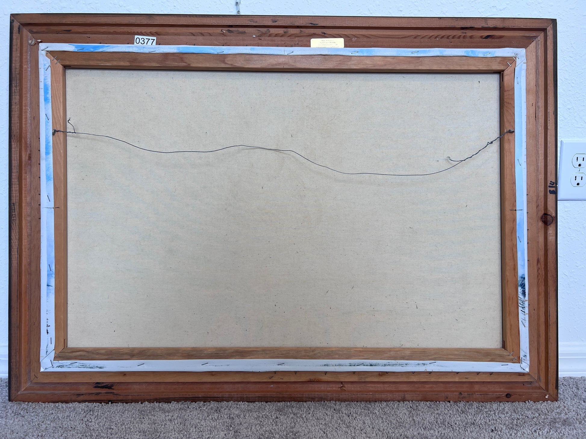 The painting is in good condition with vibrant color and no visible damage. The frame is also in good condition, showing only minimal signs of handling consistent with age. The liner has some yellow stains. Please view all photos for close-up details.