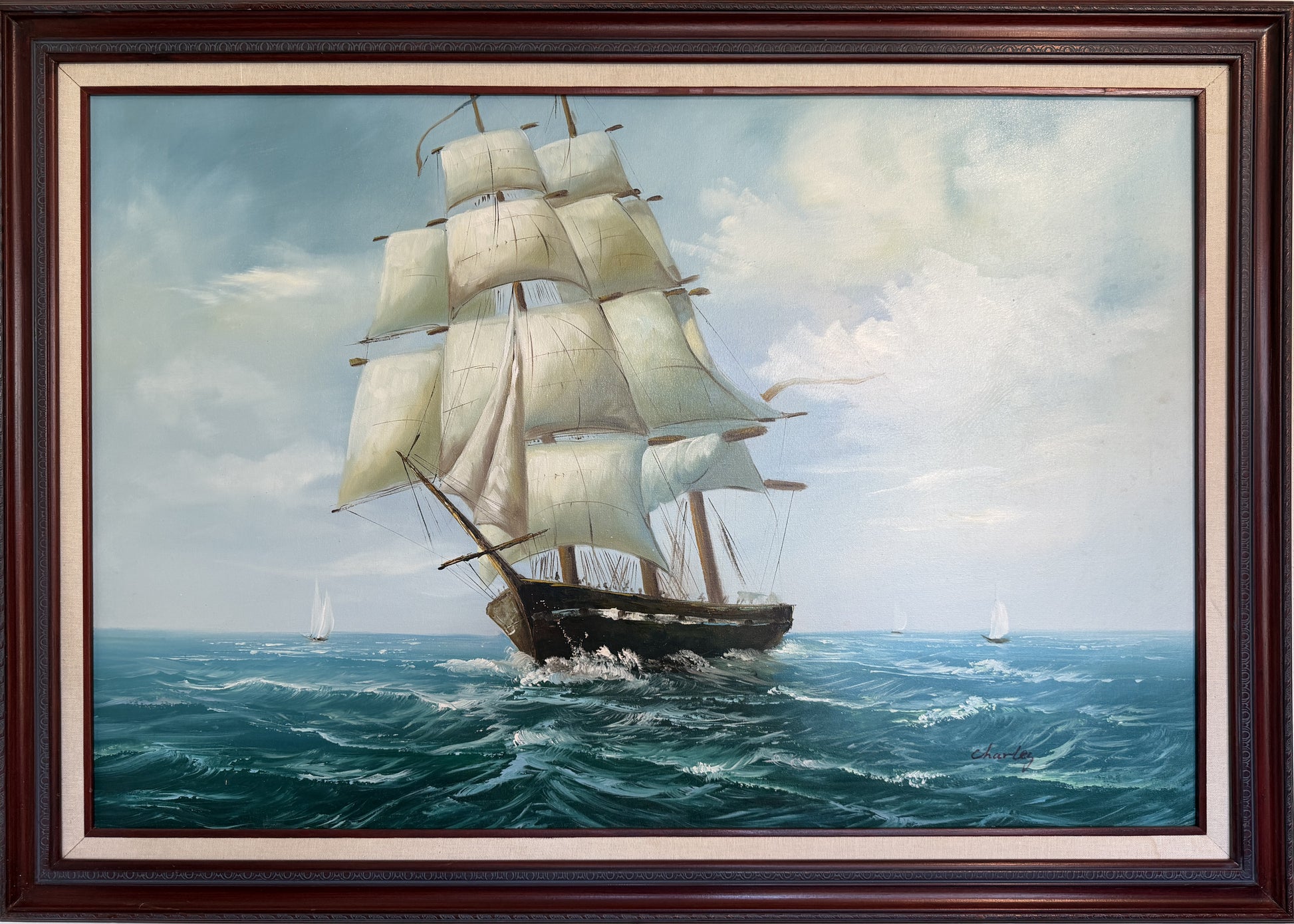 Charley - Original Marine Oil Painting Tall Ship on Open Sea Nautical Seascape