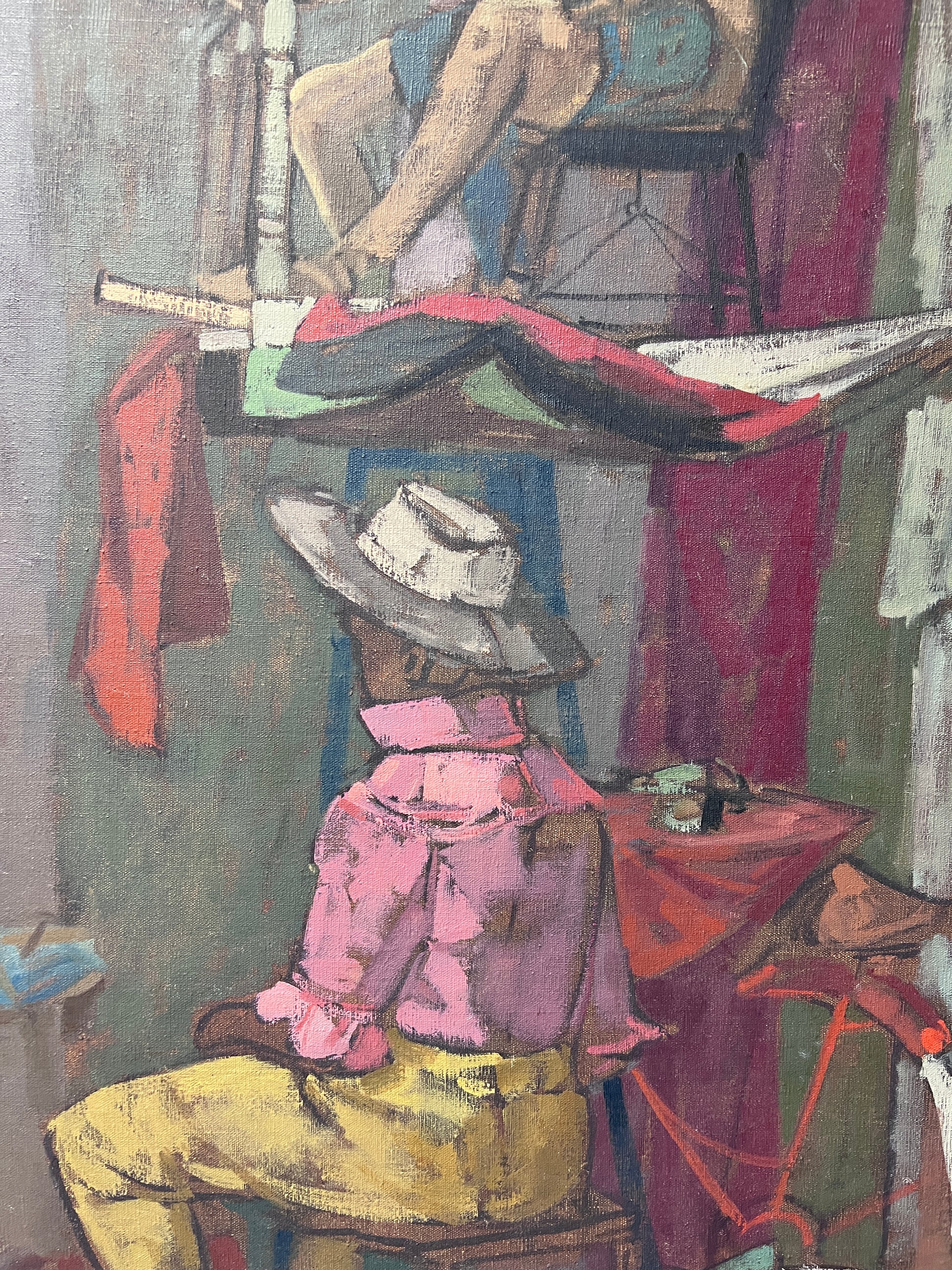 This rare painting is a wonderful addition for collectors of vintage art, rustic interiors, or mid-century figurative works.