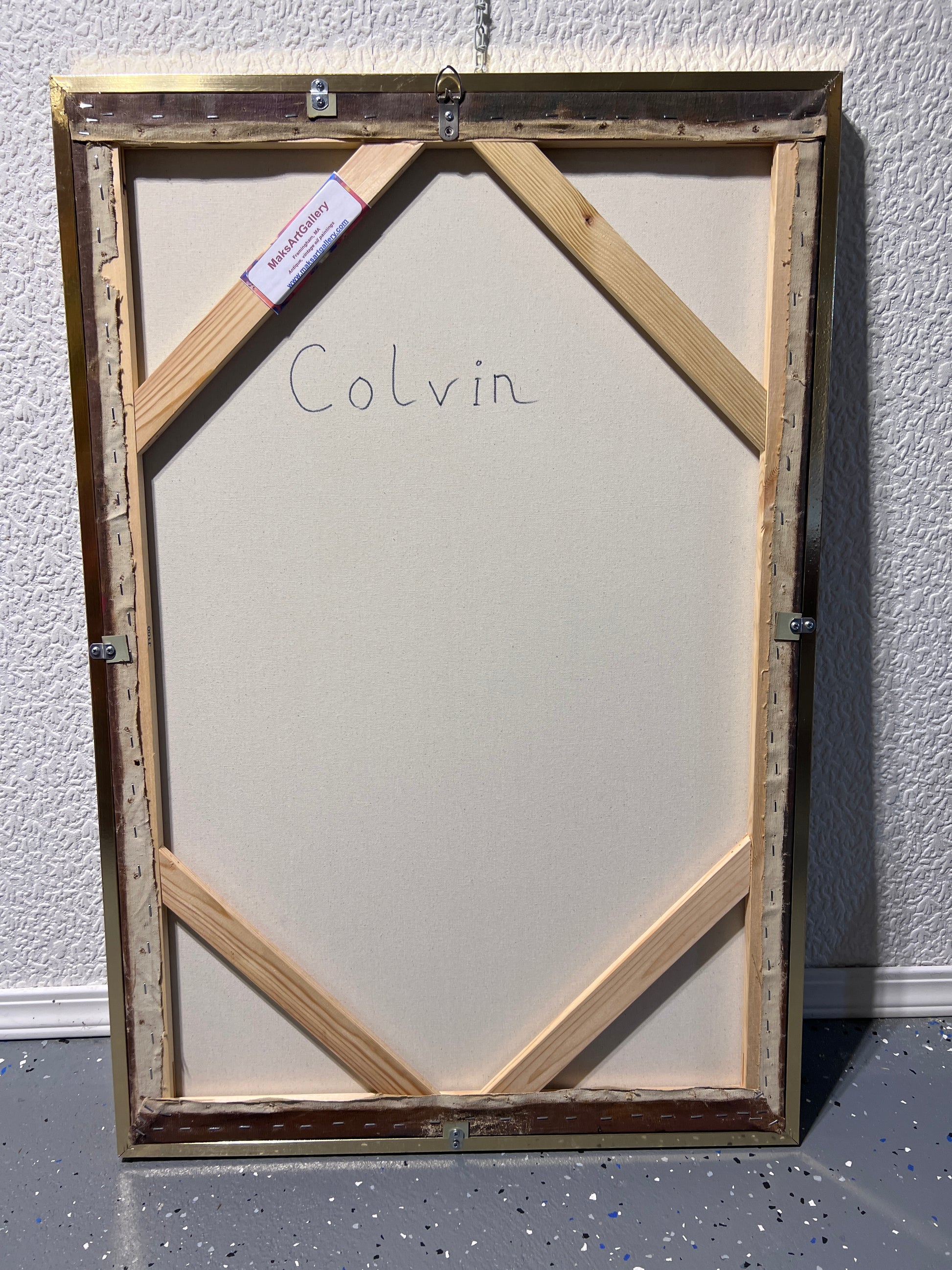 Large Original Vintage oil Painting on Canvas, Figures, Framed, Signed Colvin