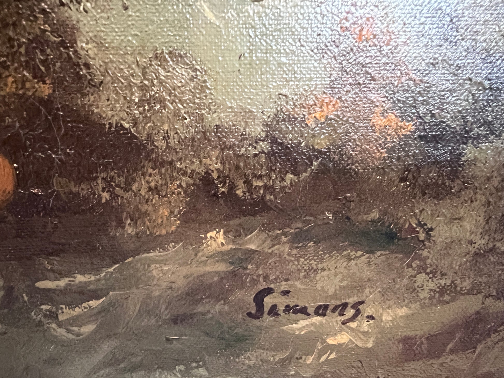 Simans Large Vintage Dutch Oil Painting on Canvas Landscape Gold Leaf Frame
