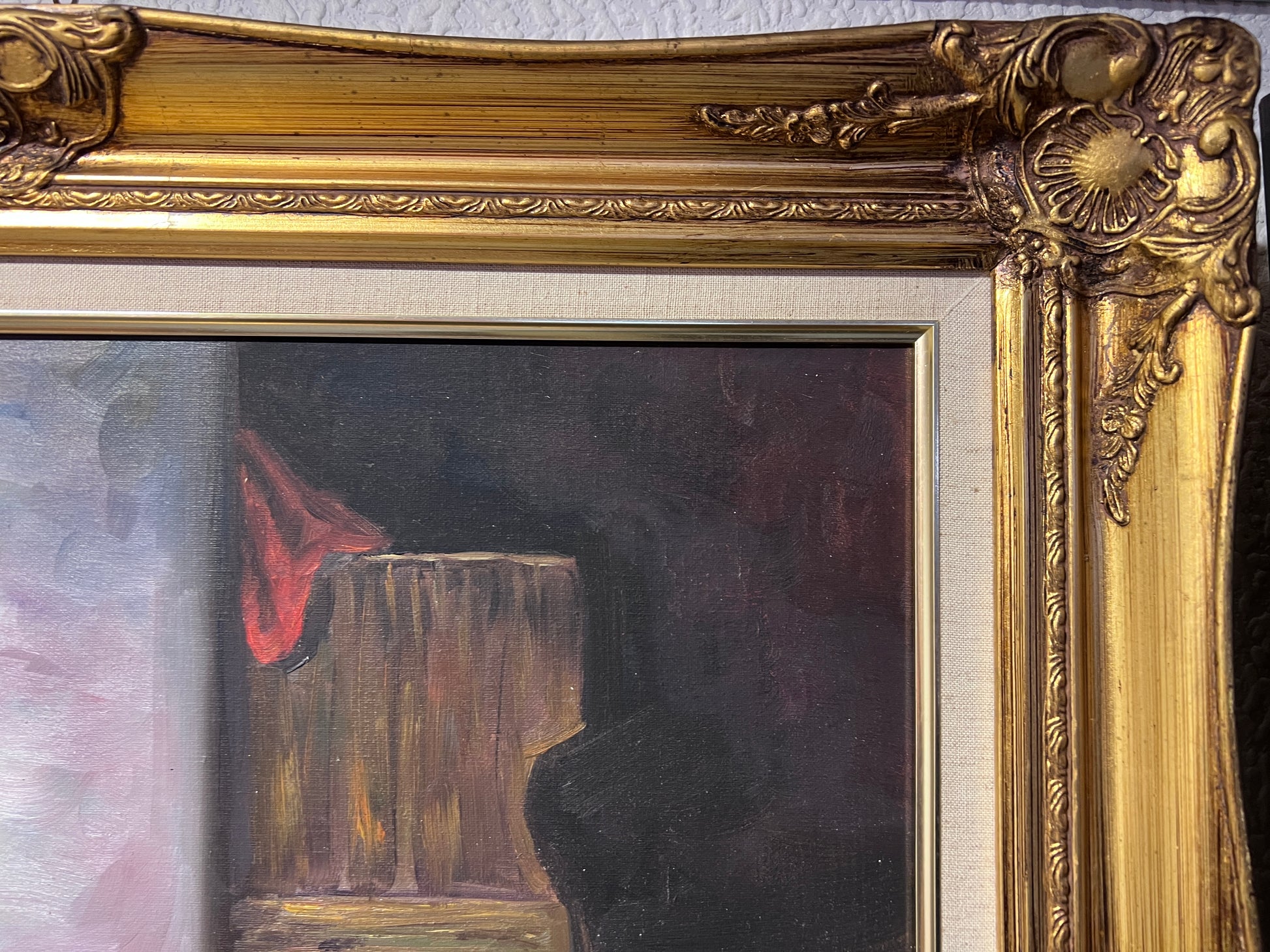 Frame: Ornate gold frame with liner