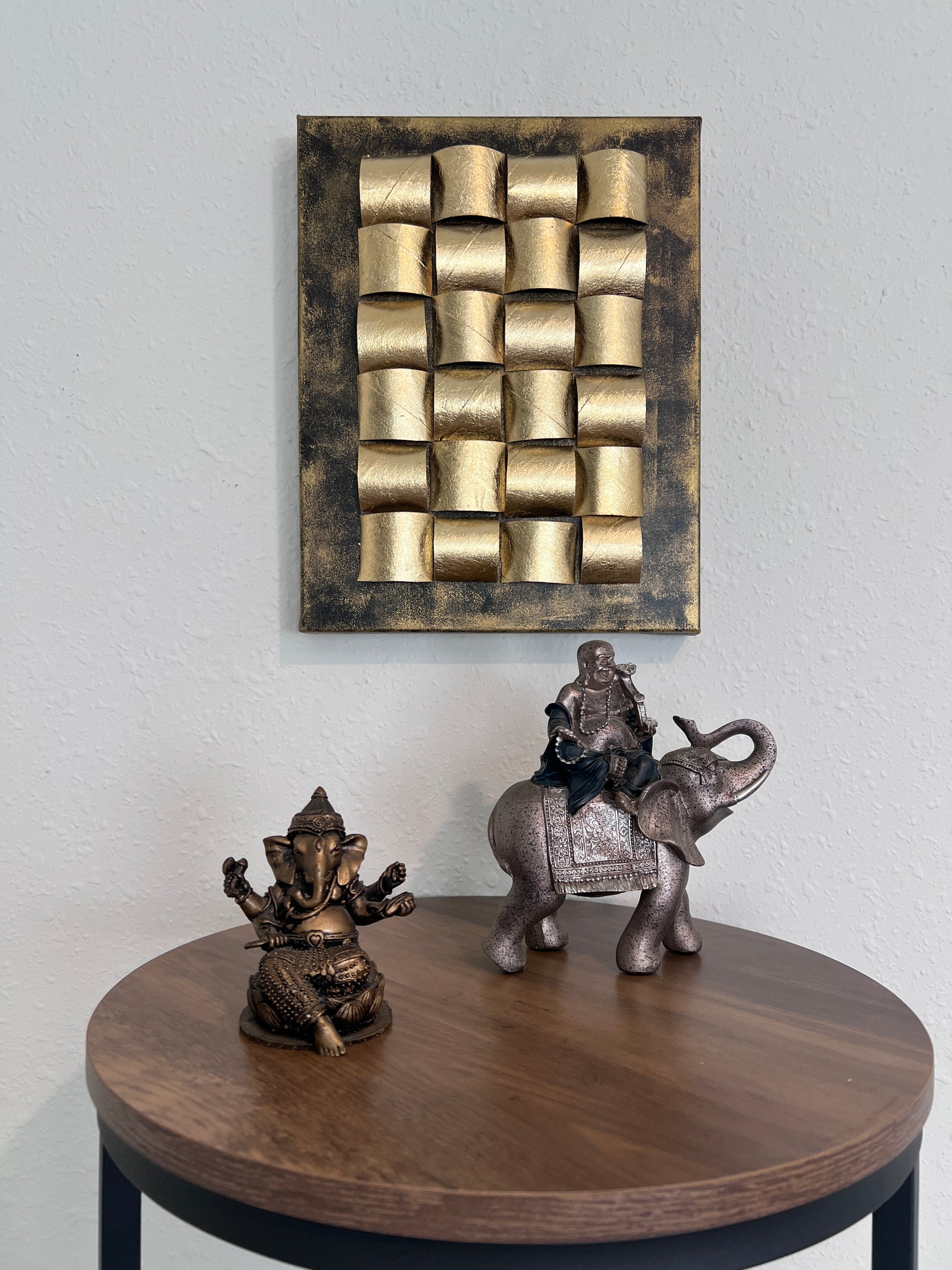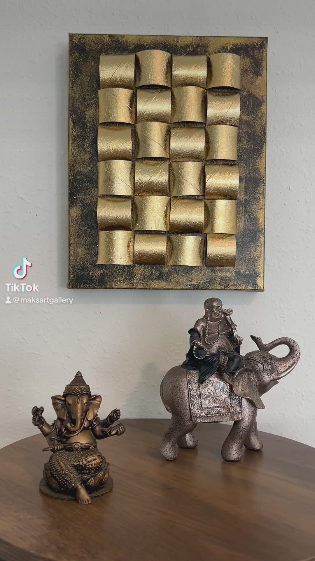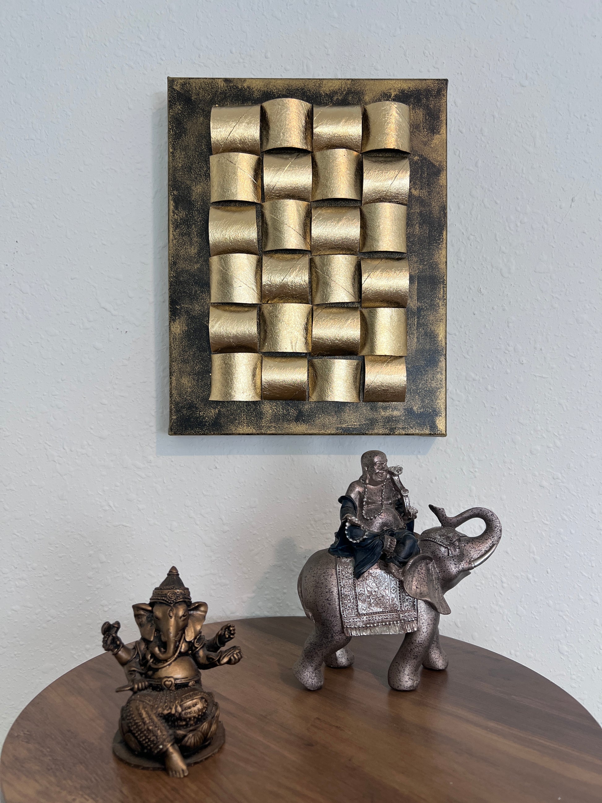 "Golden Folds" by Alena Kalen | 3D Textured Modern Interior Art | Signed + COA
