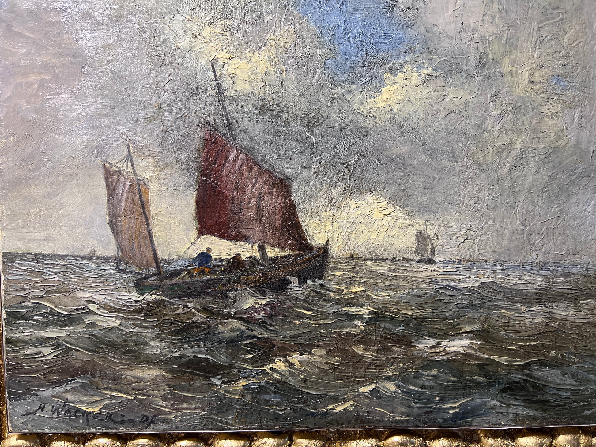 HANS WACKER-ELSEN Germany (1868-1958) Antique oil on canvas Seascape, Gold Frame