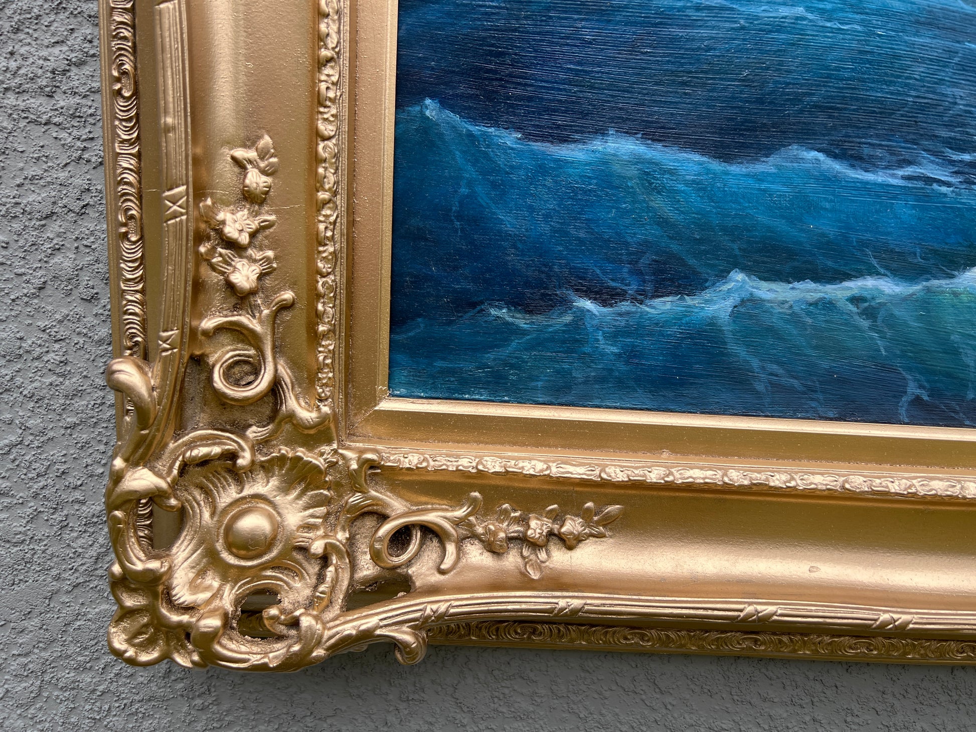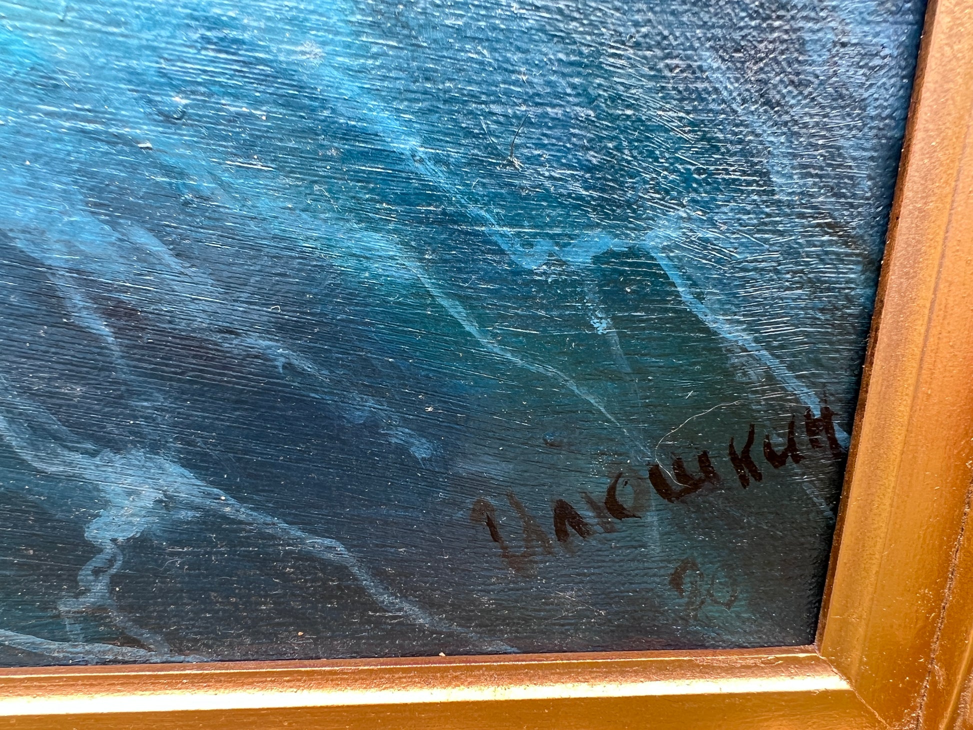 Russian Artist Signed Large Oil Painting Canvas Seascape w/ Ornate Gold Frame