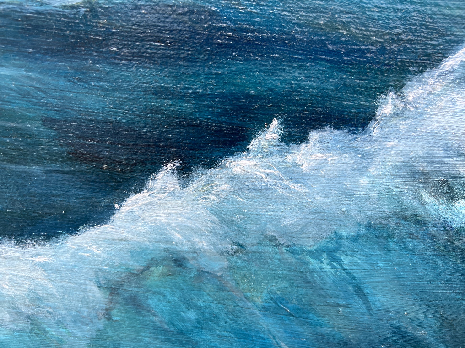 Signed by the artist in the lower right corner, this piece shows a stylistic influence reminiscent of Ivan Aivazovsky, with its luminous depiction of transparent waves and masterful handling of light and stormy skies.