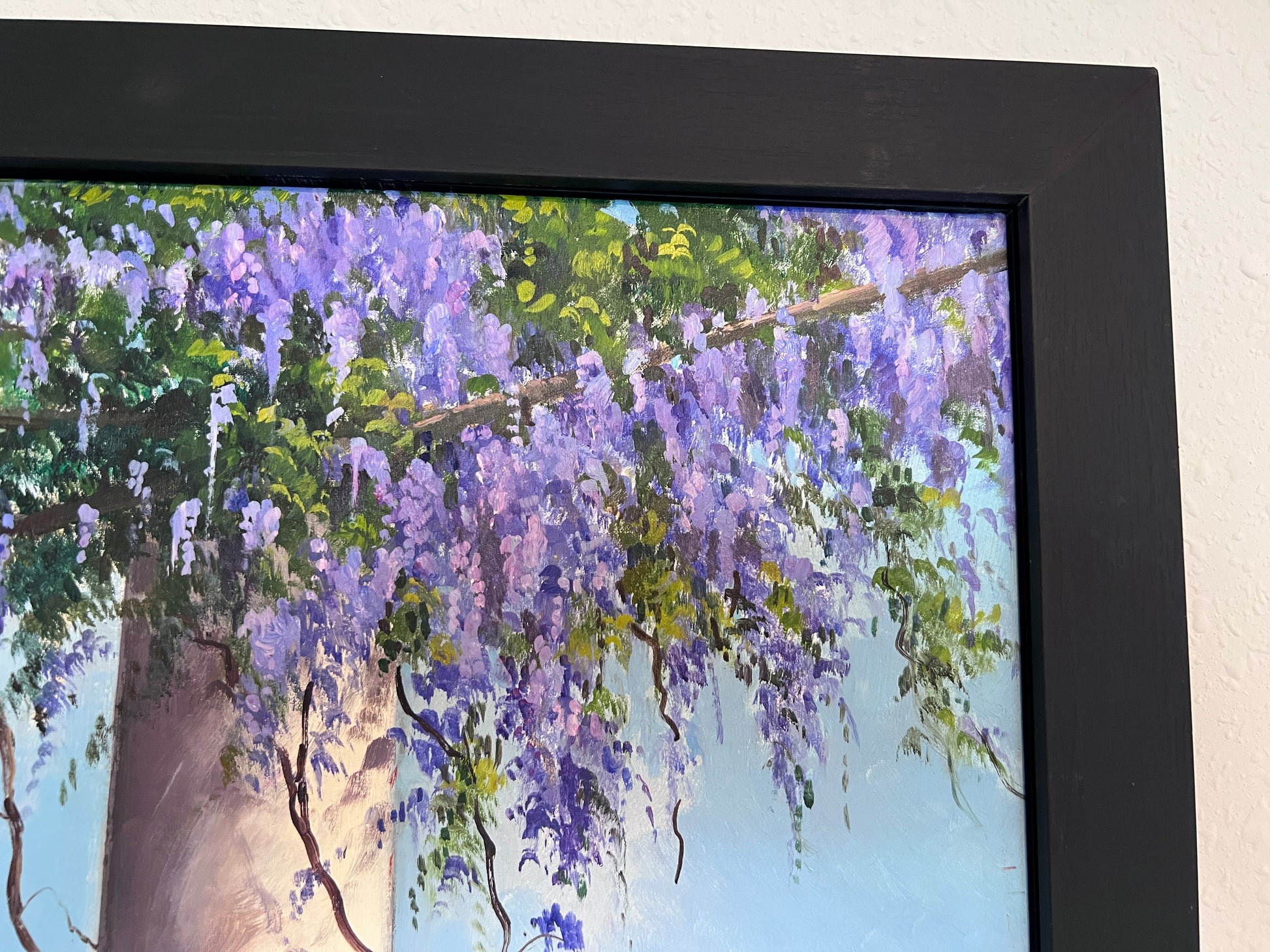 Subject: Mediterranean terrace with sea view and wisteria