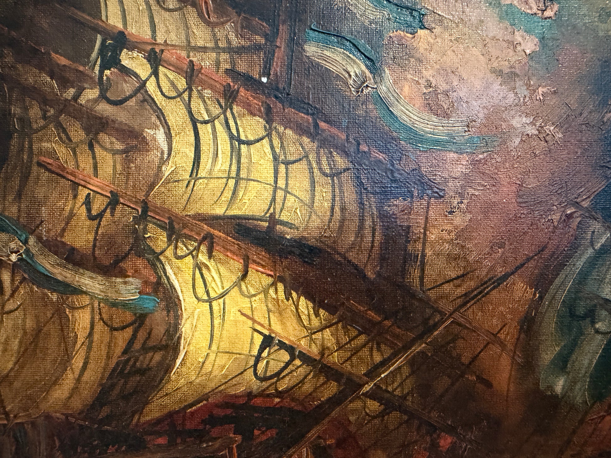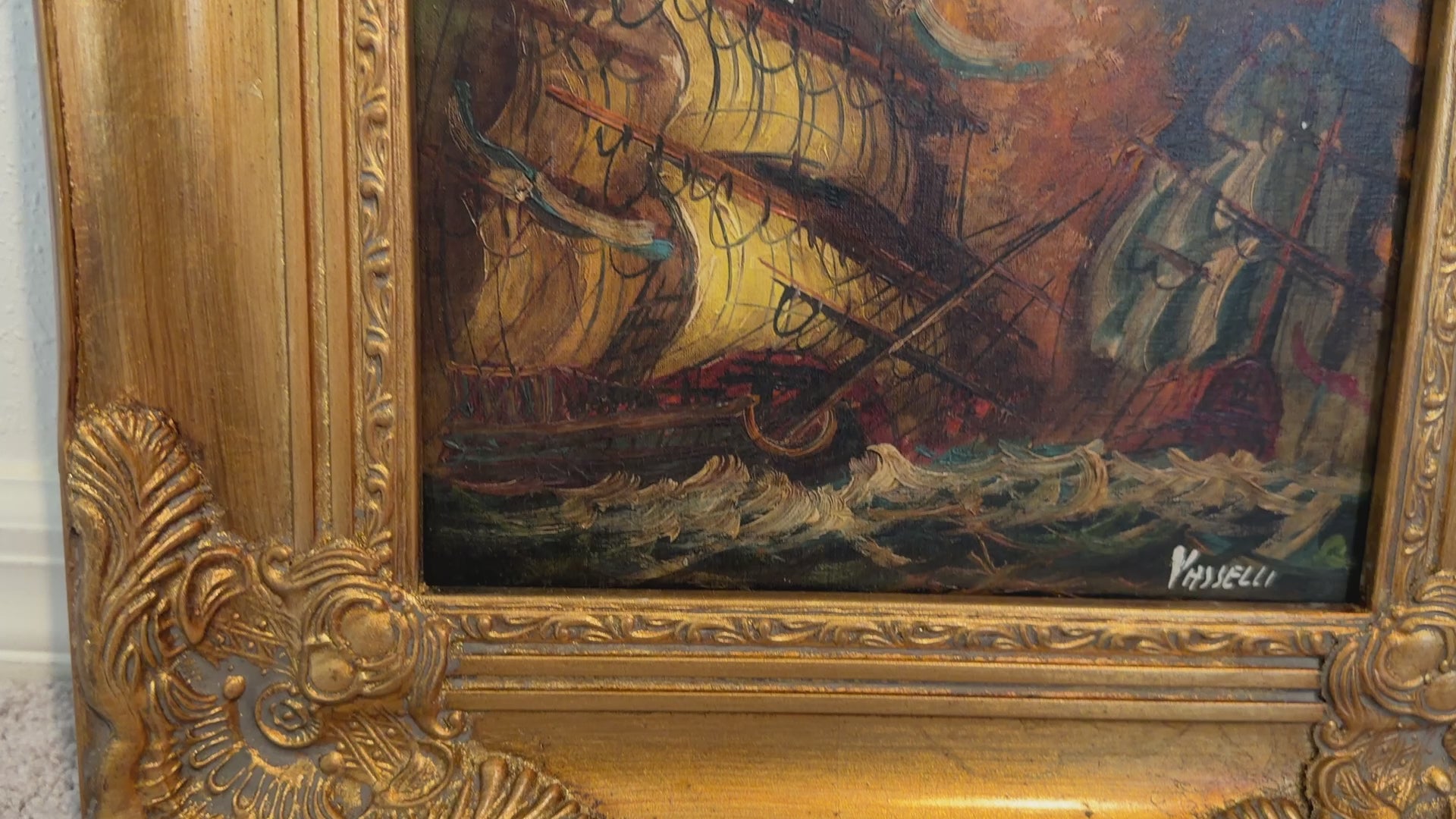 Italian Vintage Maritime Ship Oil Painting Signed Vasselli Nautical Seascape