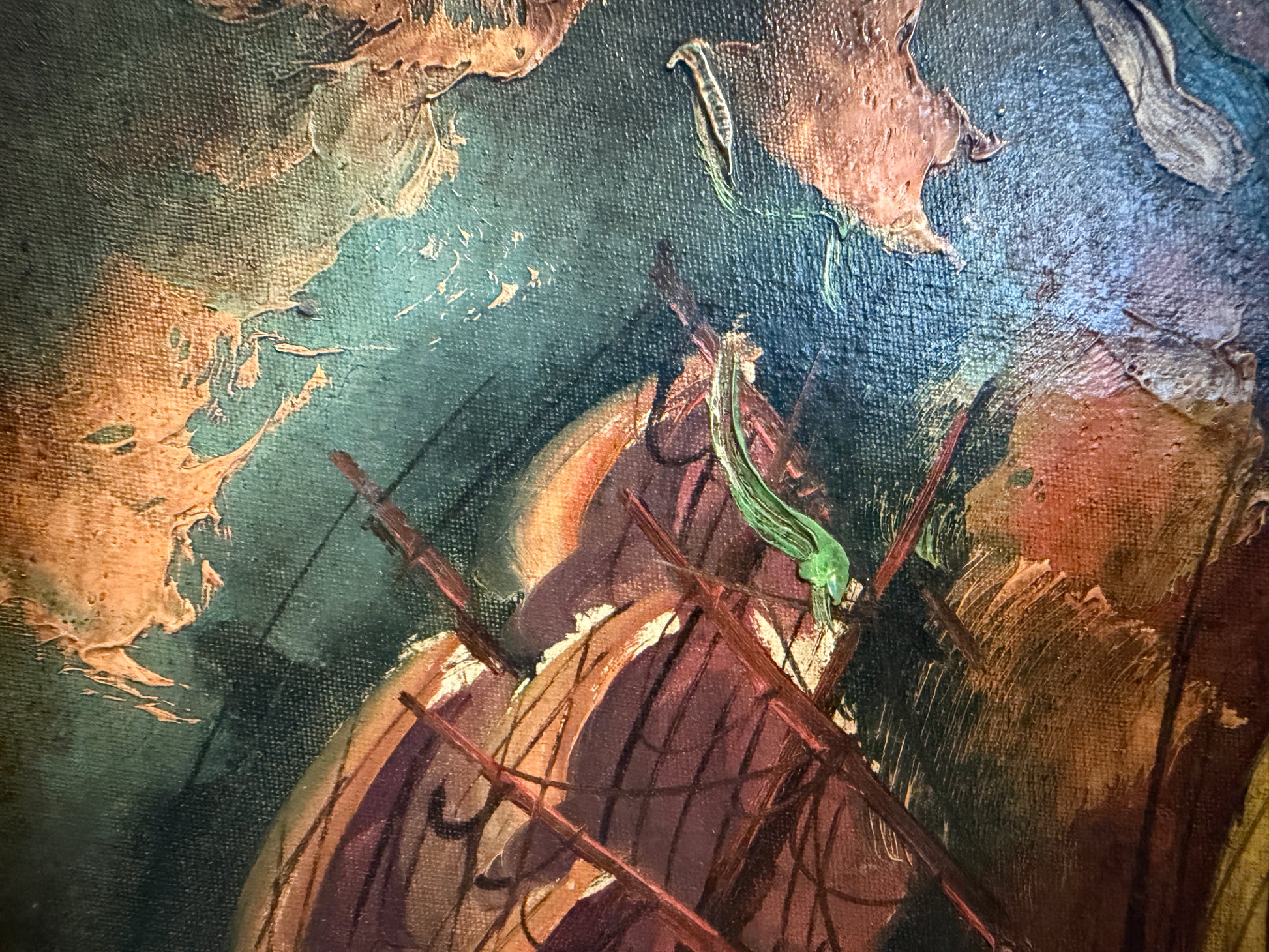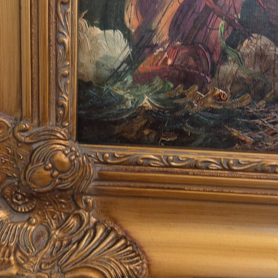 Italian Vintage Maritime Ship Oil Painting by Vasselli Nautical Seascape