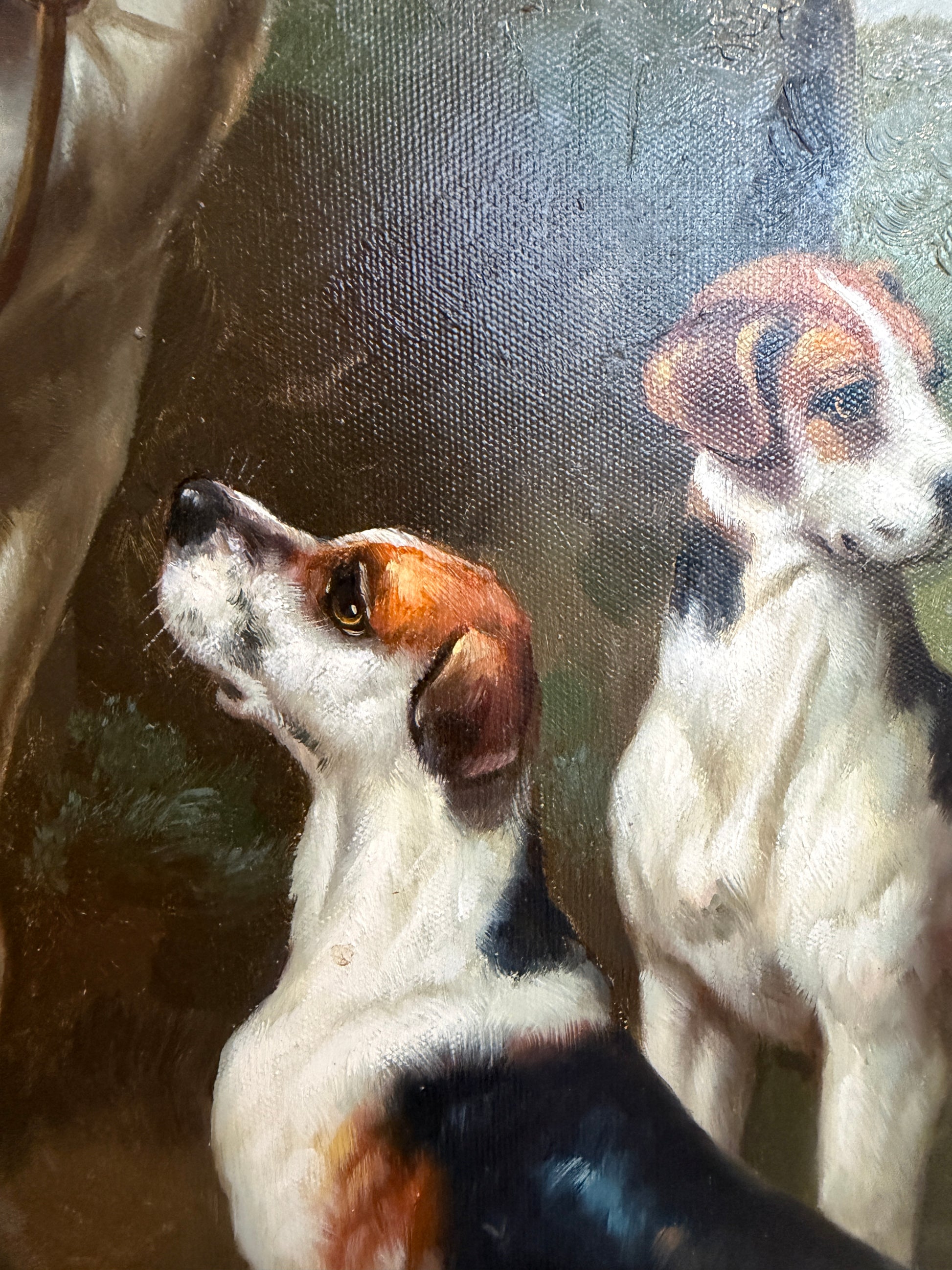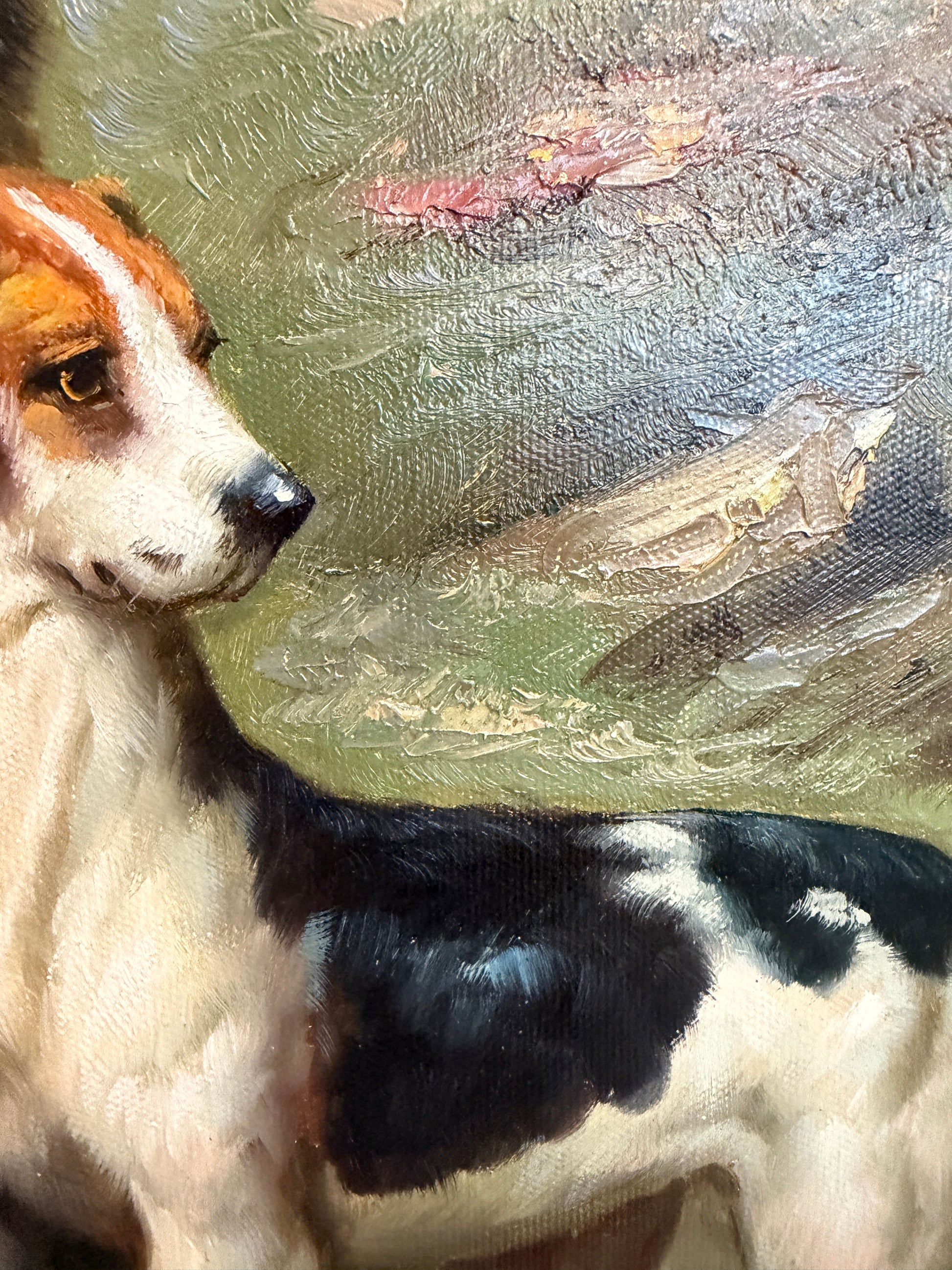 Jordan Original Oil Painting, English Fox Hunt Scene with Rider, Horses & Hounds