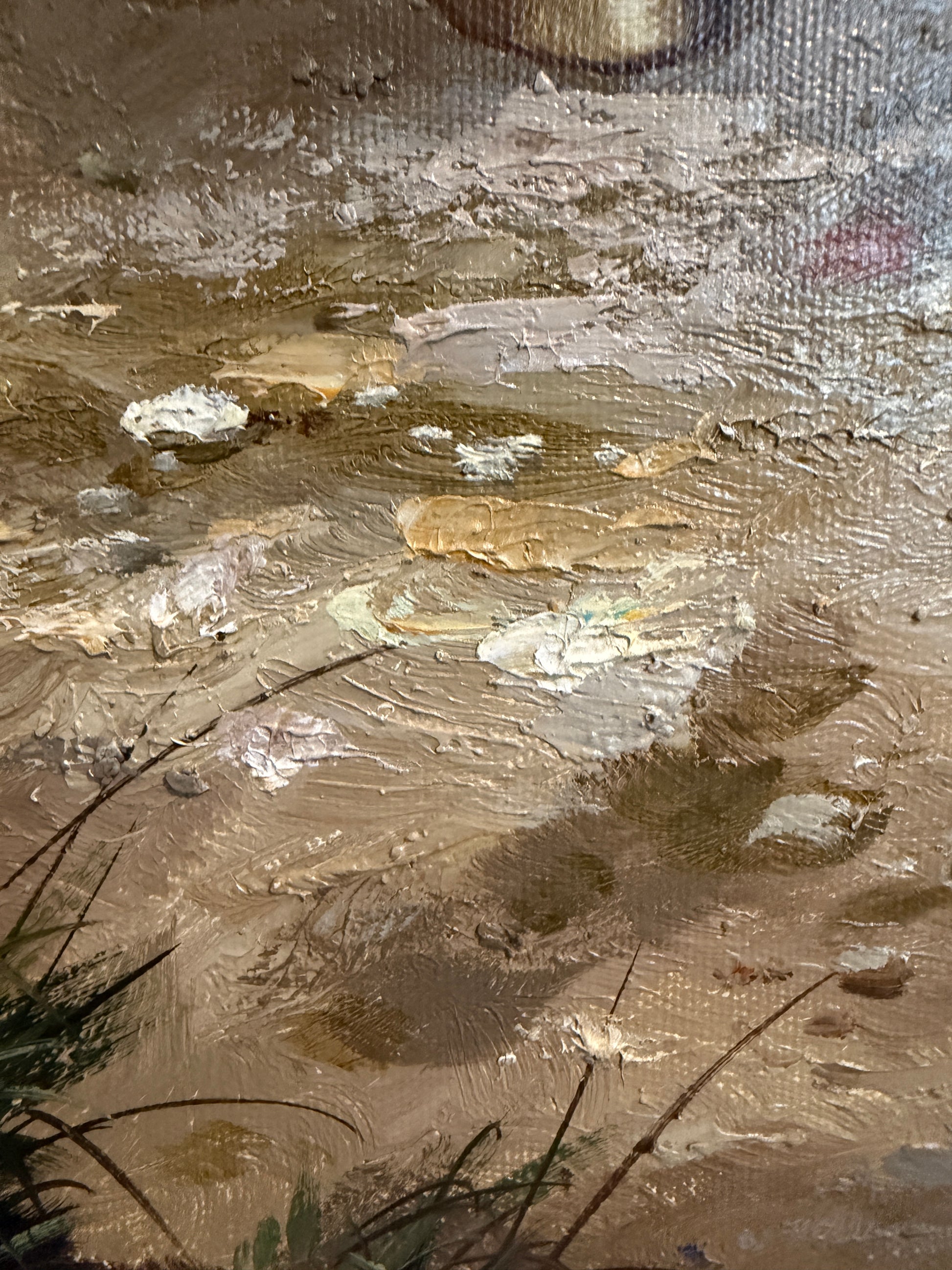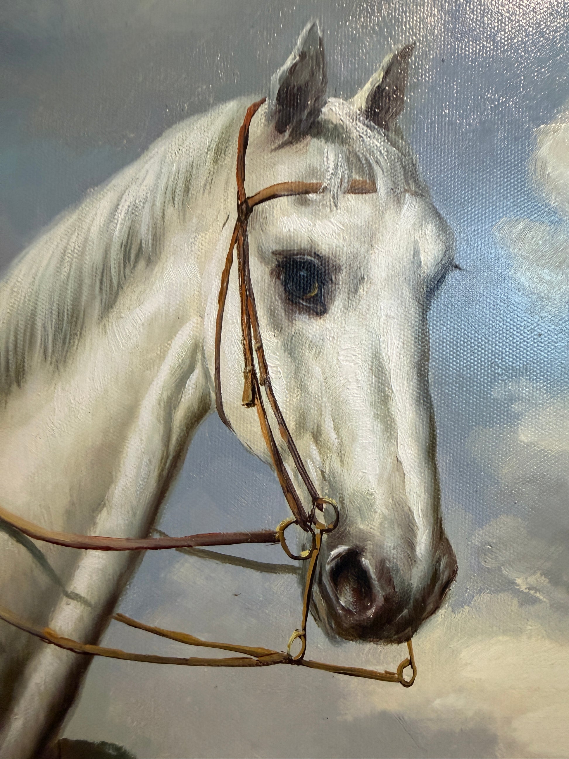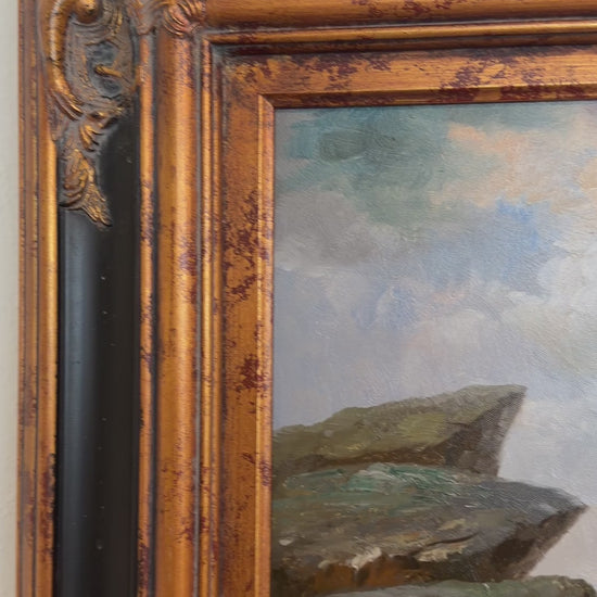 The painting is in good vintage condition. The canvas appears stable and well-stretched, with visible brush texture and light, age-appropriate surface wear. The reverse shows clean backing and professional framing. The frame is in good condition.Â