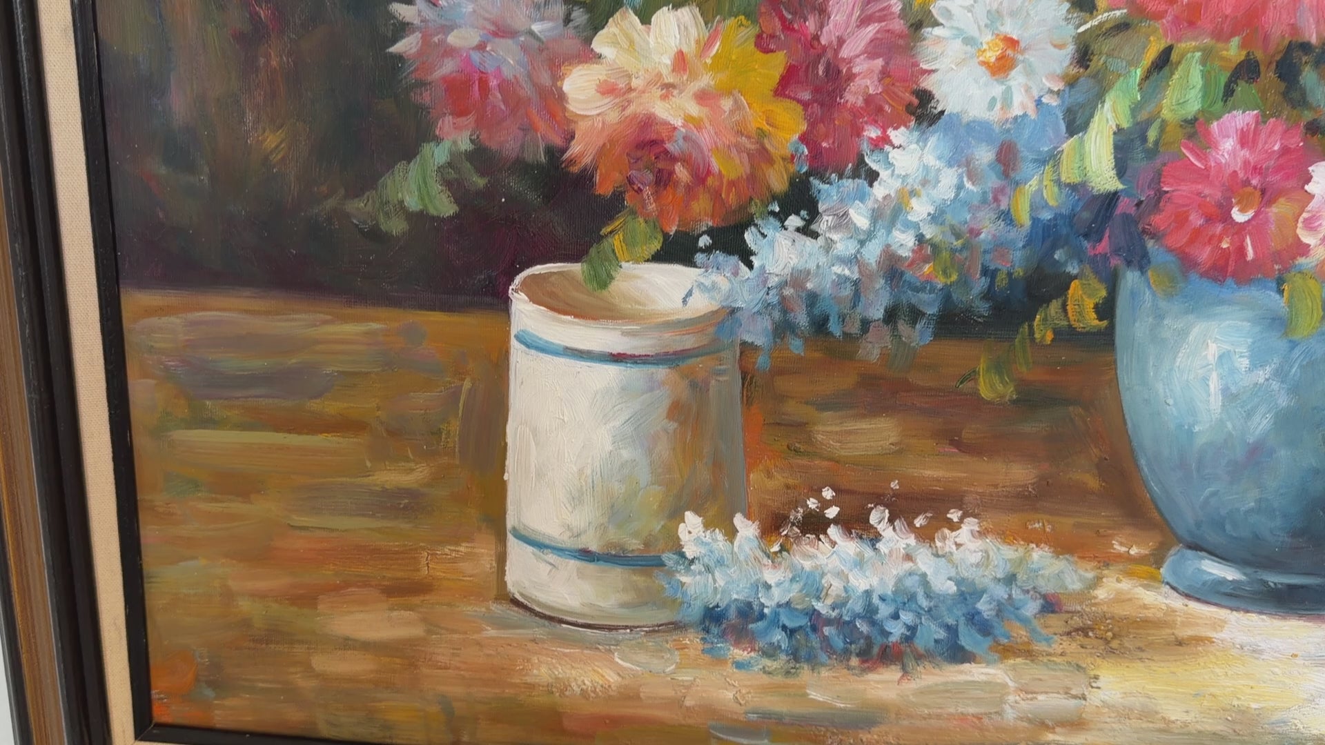 Large Floral Still Life Original Oil Painting on canvas Signed W. Adams Framed