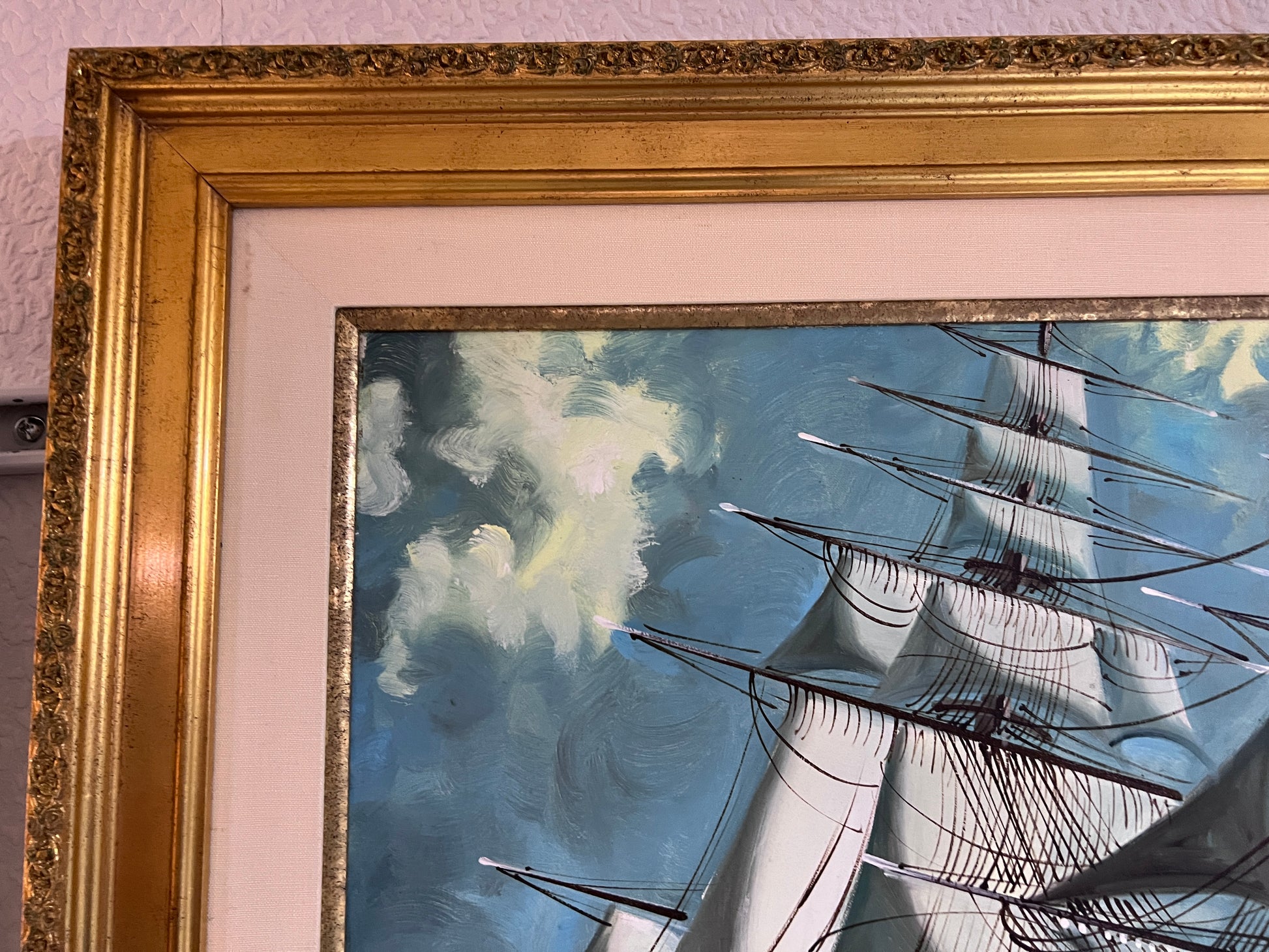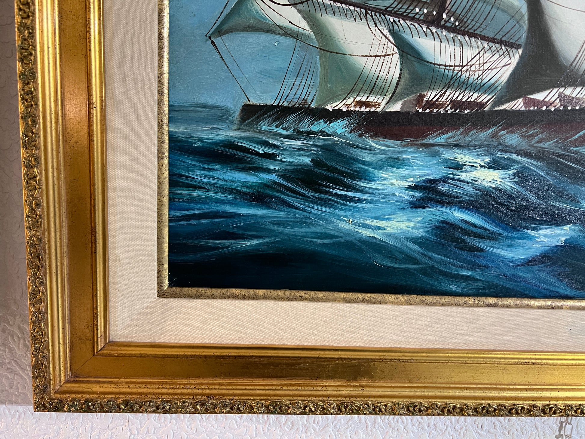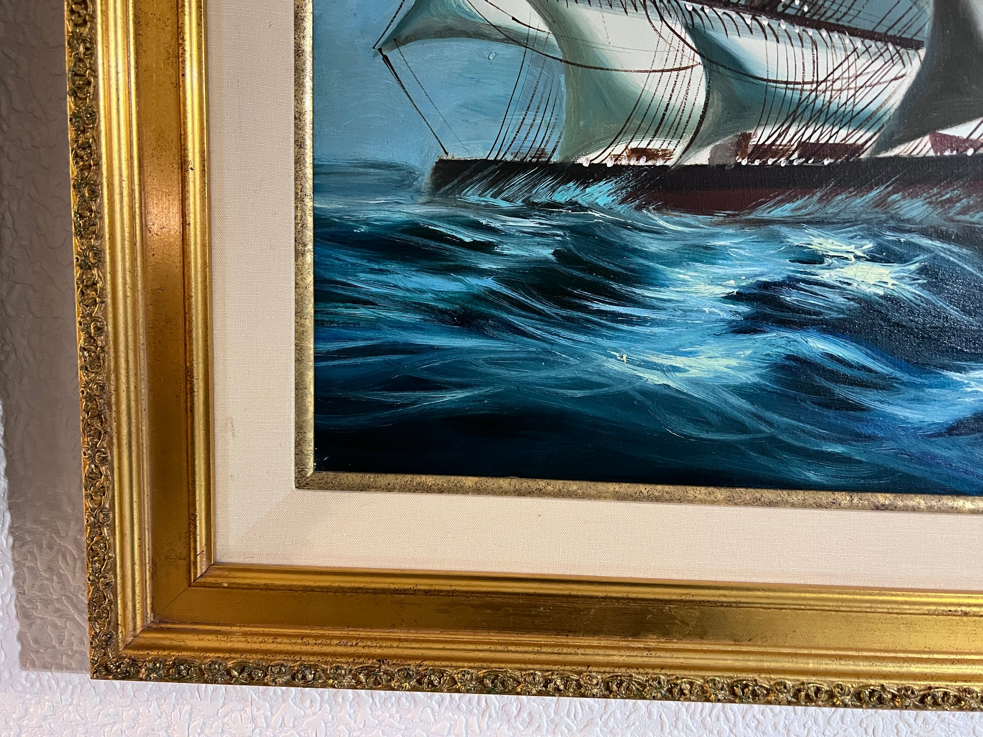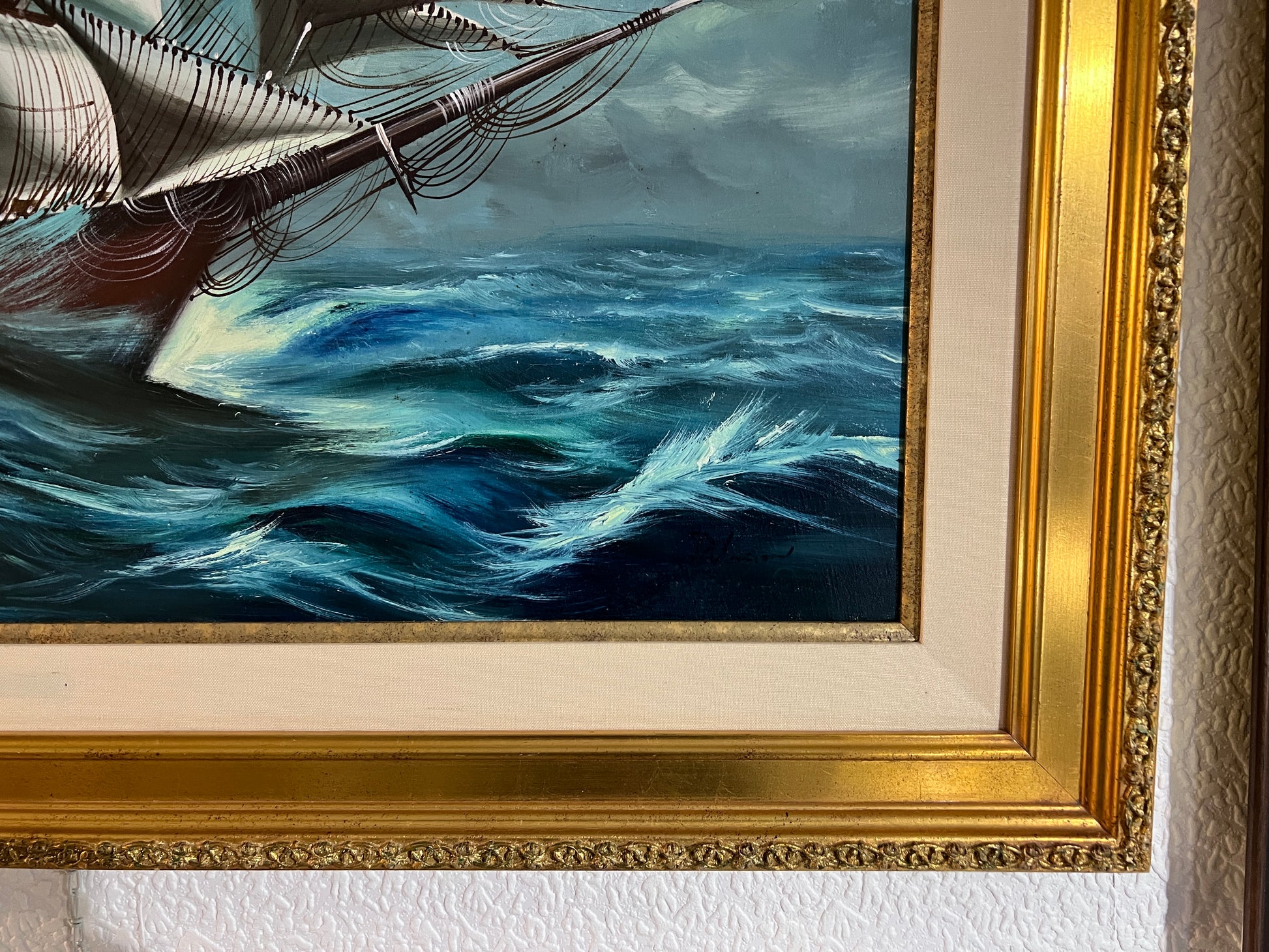 Original Oil painting on canvas, seascape, Sailing Ship, signed, framed