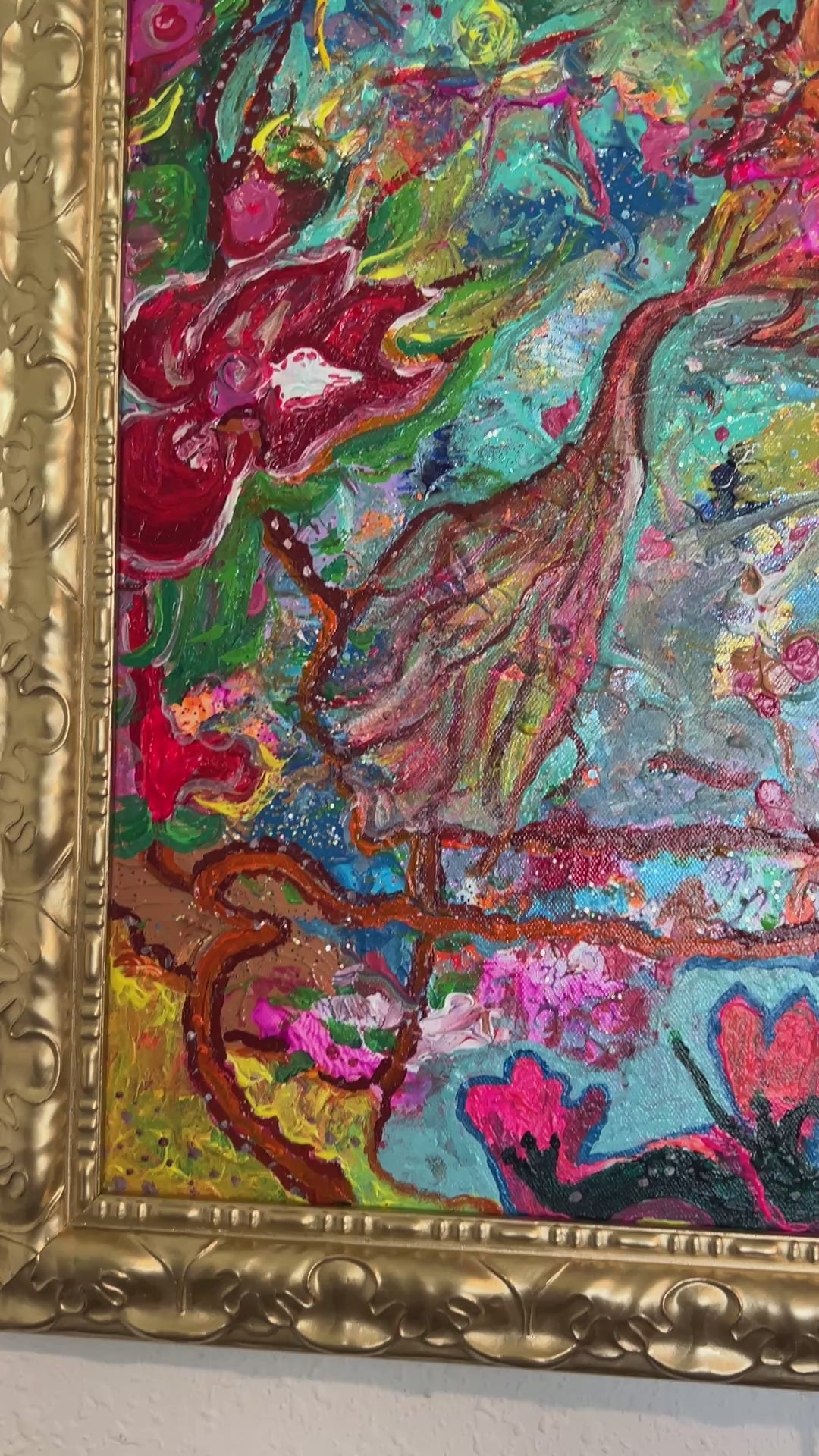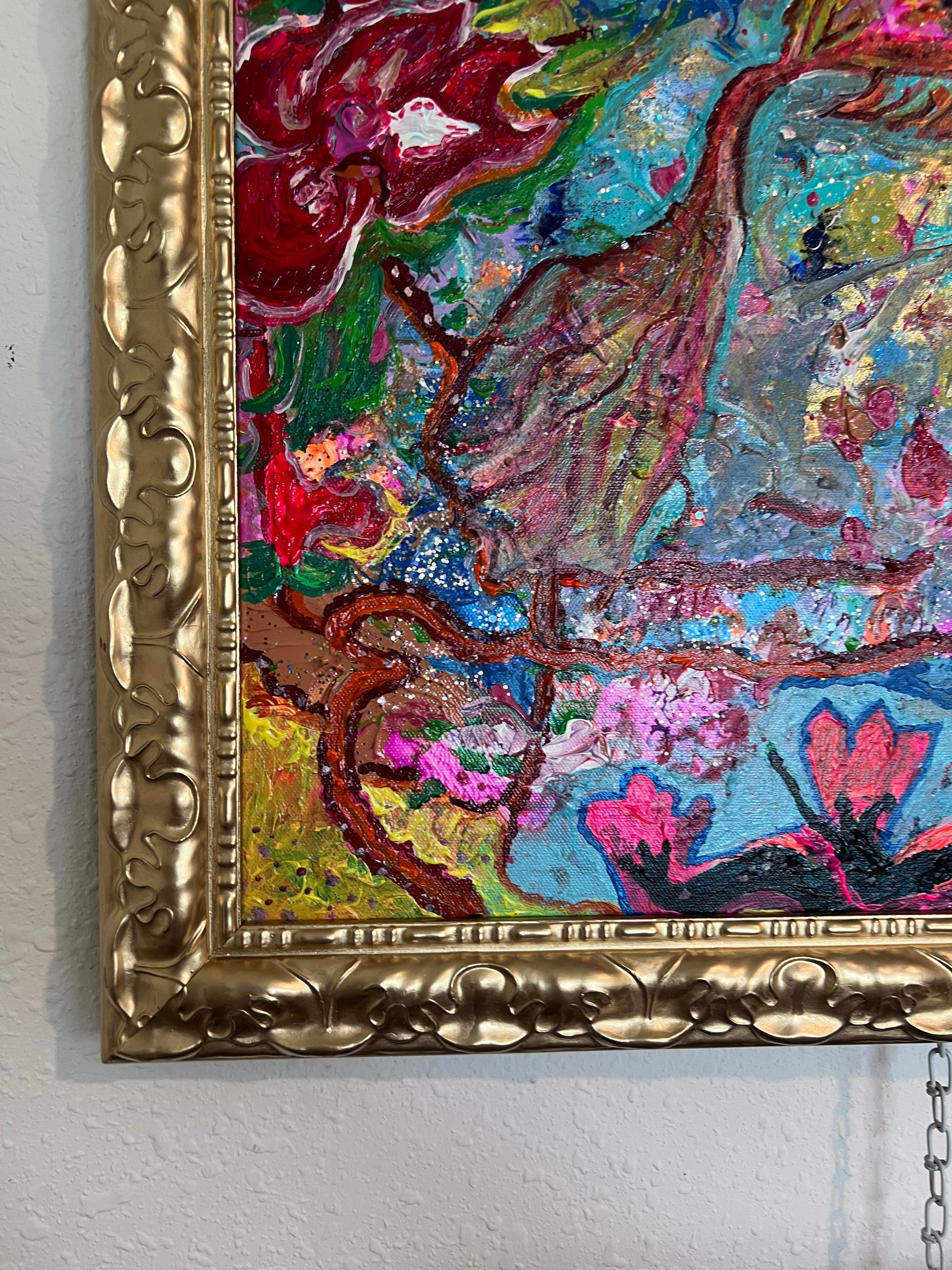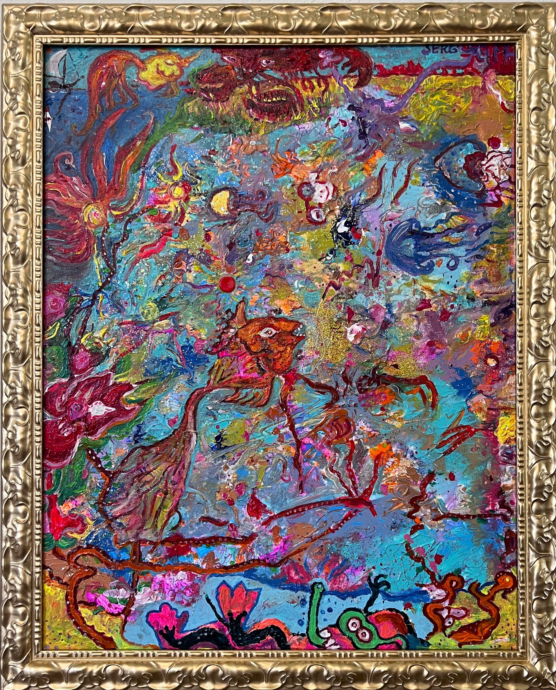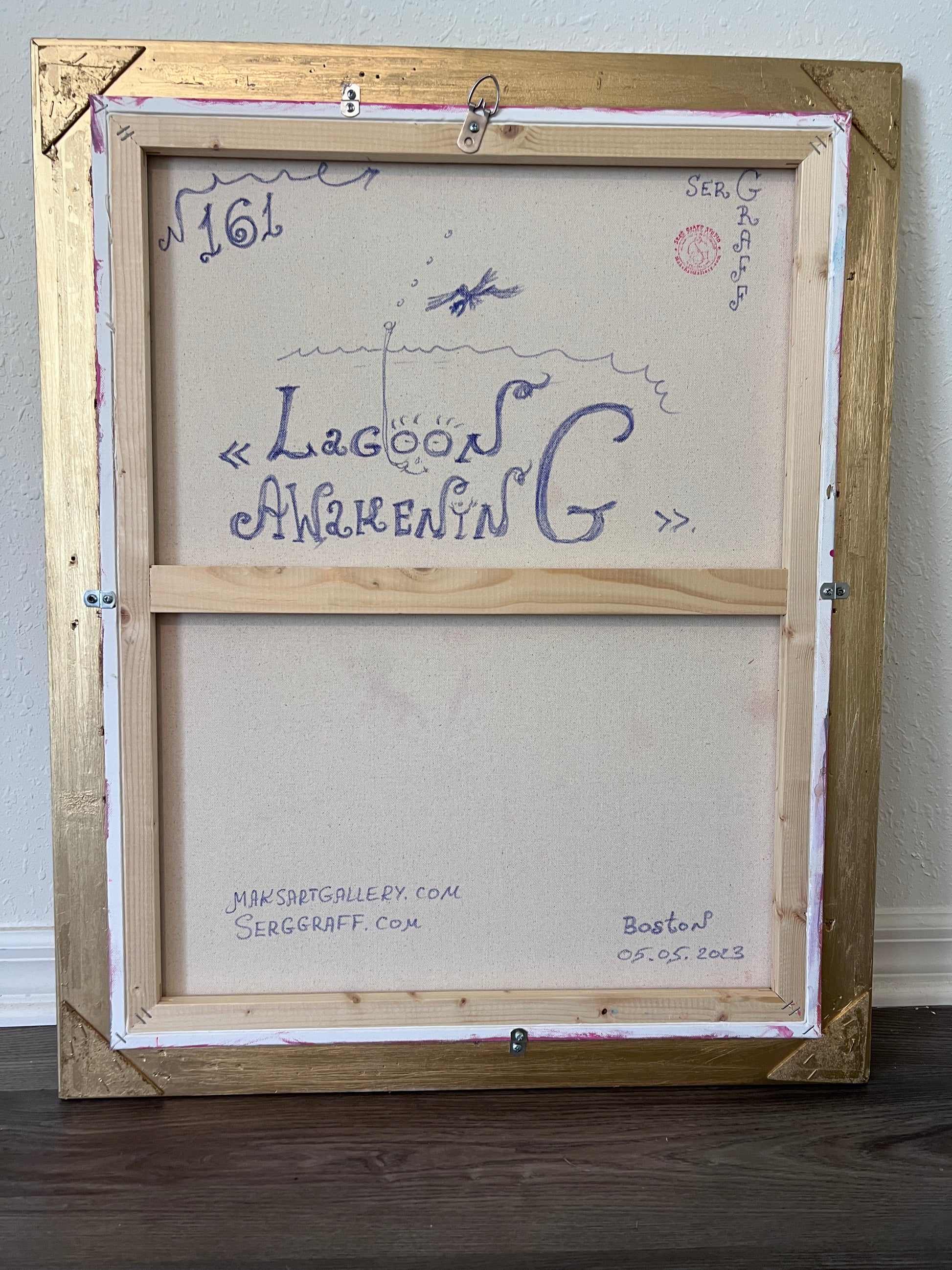This striking and imaginative painting by Serg Graff, titled “Lagoon Awakening,” is a unique large-scale work created with acrylic on canvas in a richly textured fantasy abstract style.