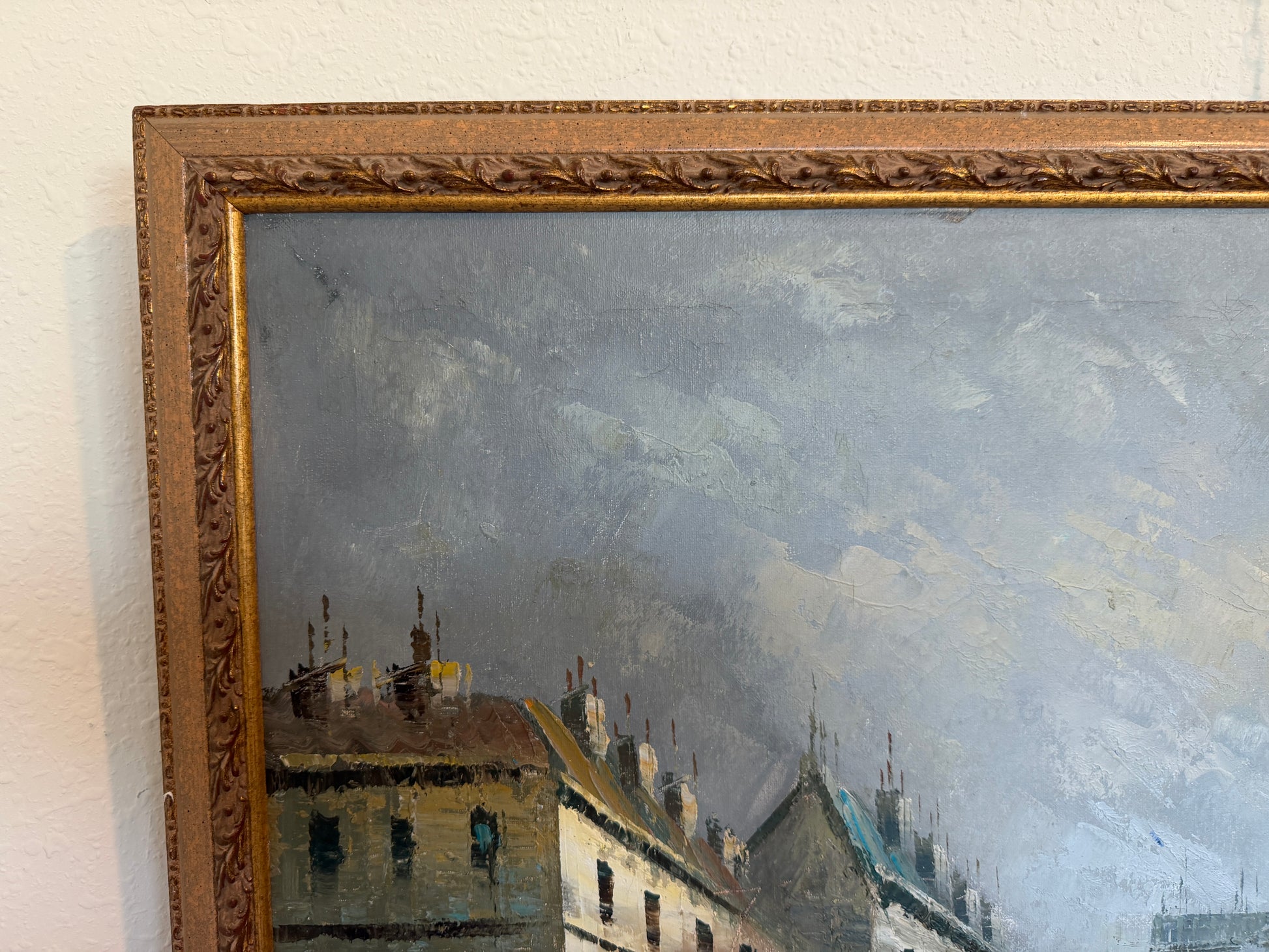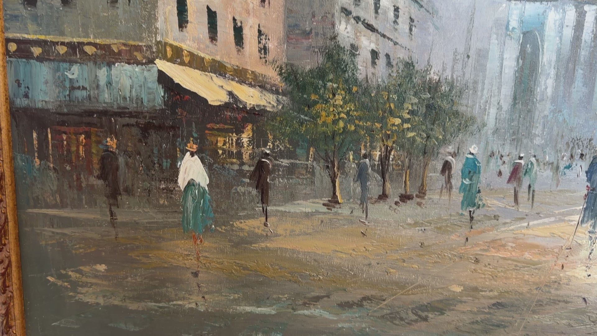 Listed Artist C. Burnett oil painting on canvas, Paris street view Framed Signed