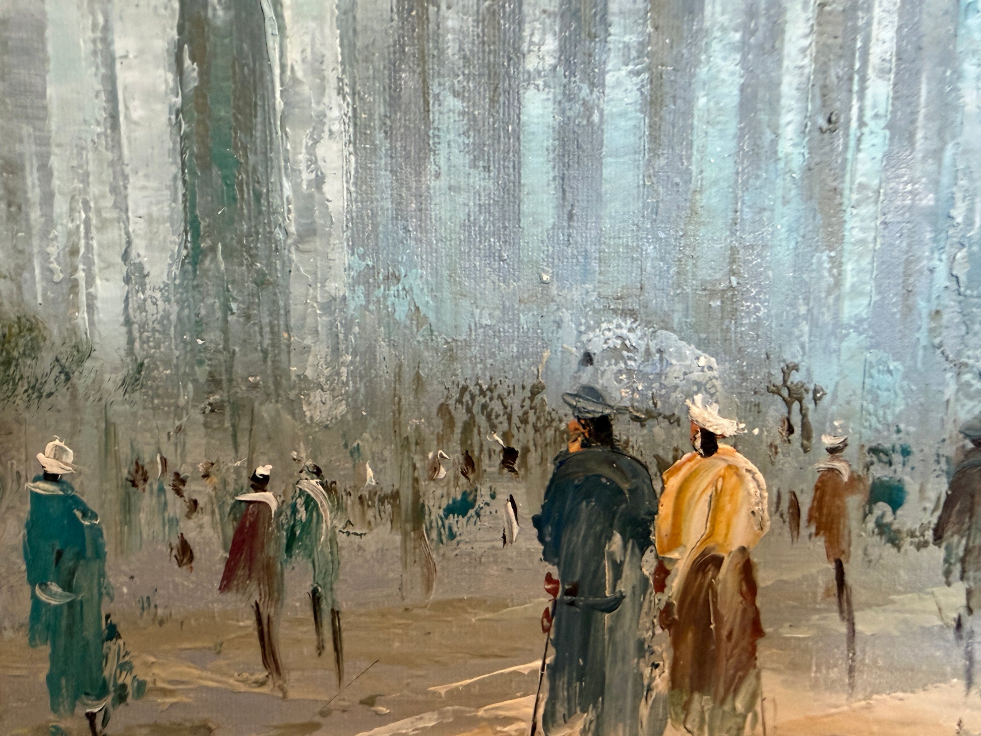 ✔️ Condition: Painting is in good vintage condition with a stable paint surface and no visible losses or restorations observed. The frame shows minor scuffs consistent with age, and the liner has some light yellow spotting.
