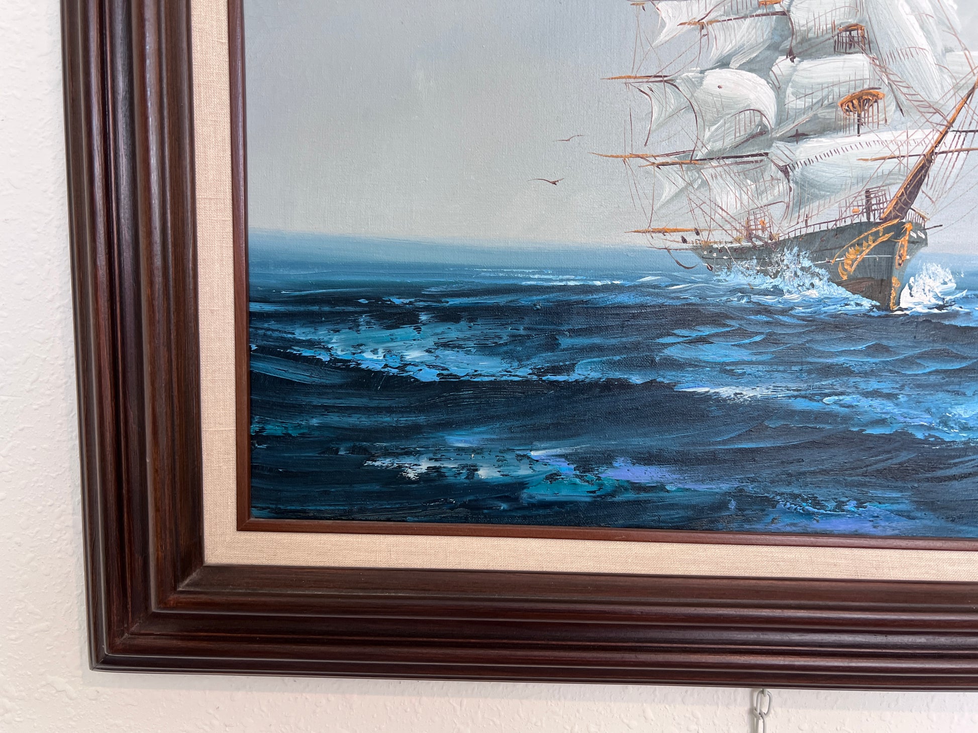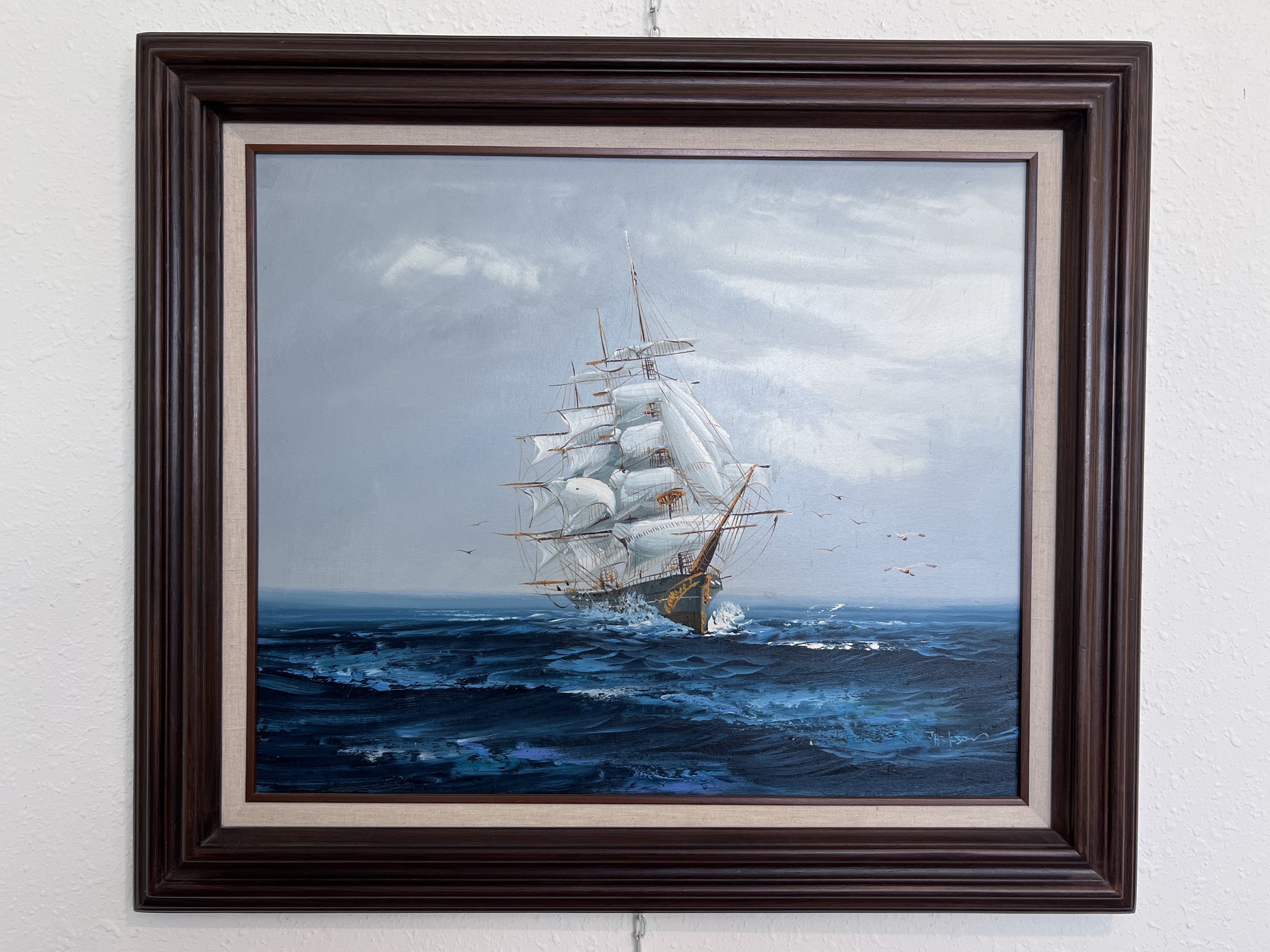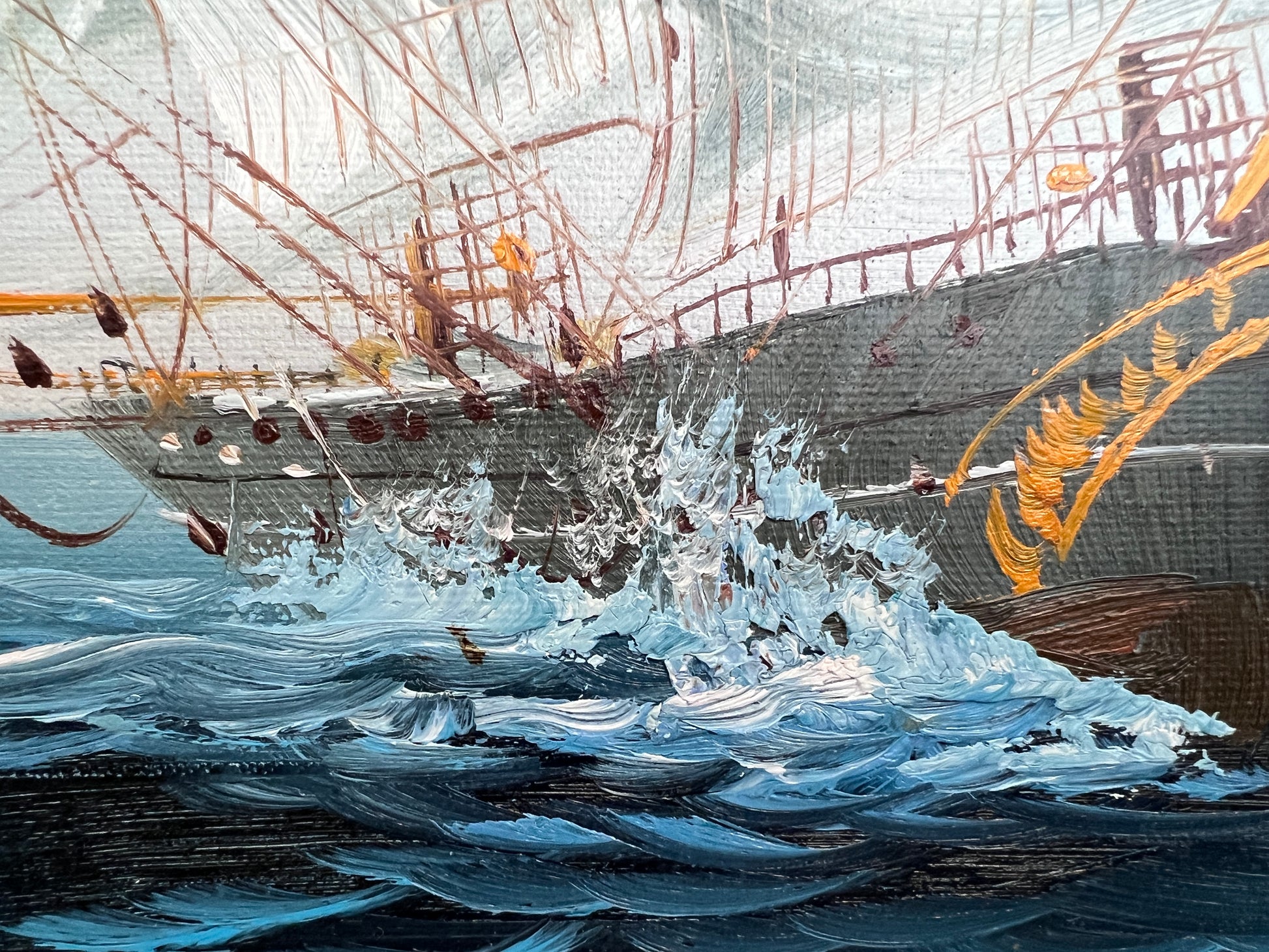 Listed Artist Hewett Jackson Original Oil Painting | Tall Ship Seascape | Framed