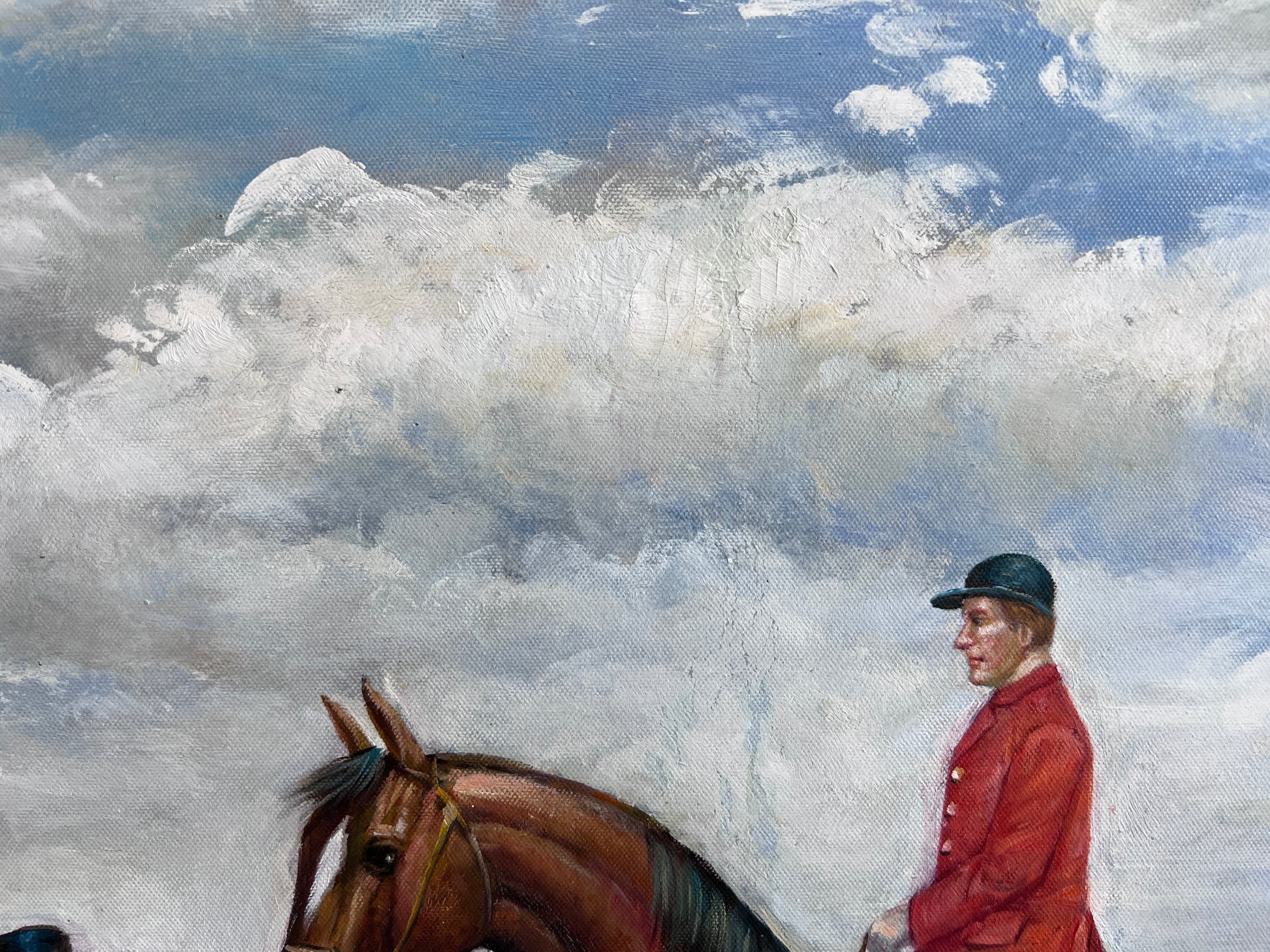 M. Aarinon Original Oil Painting, English Fox Hunt Scene, Horses & Hounds