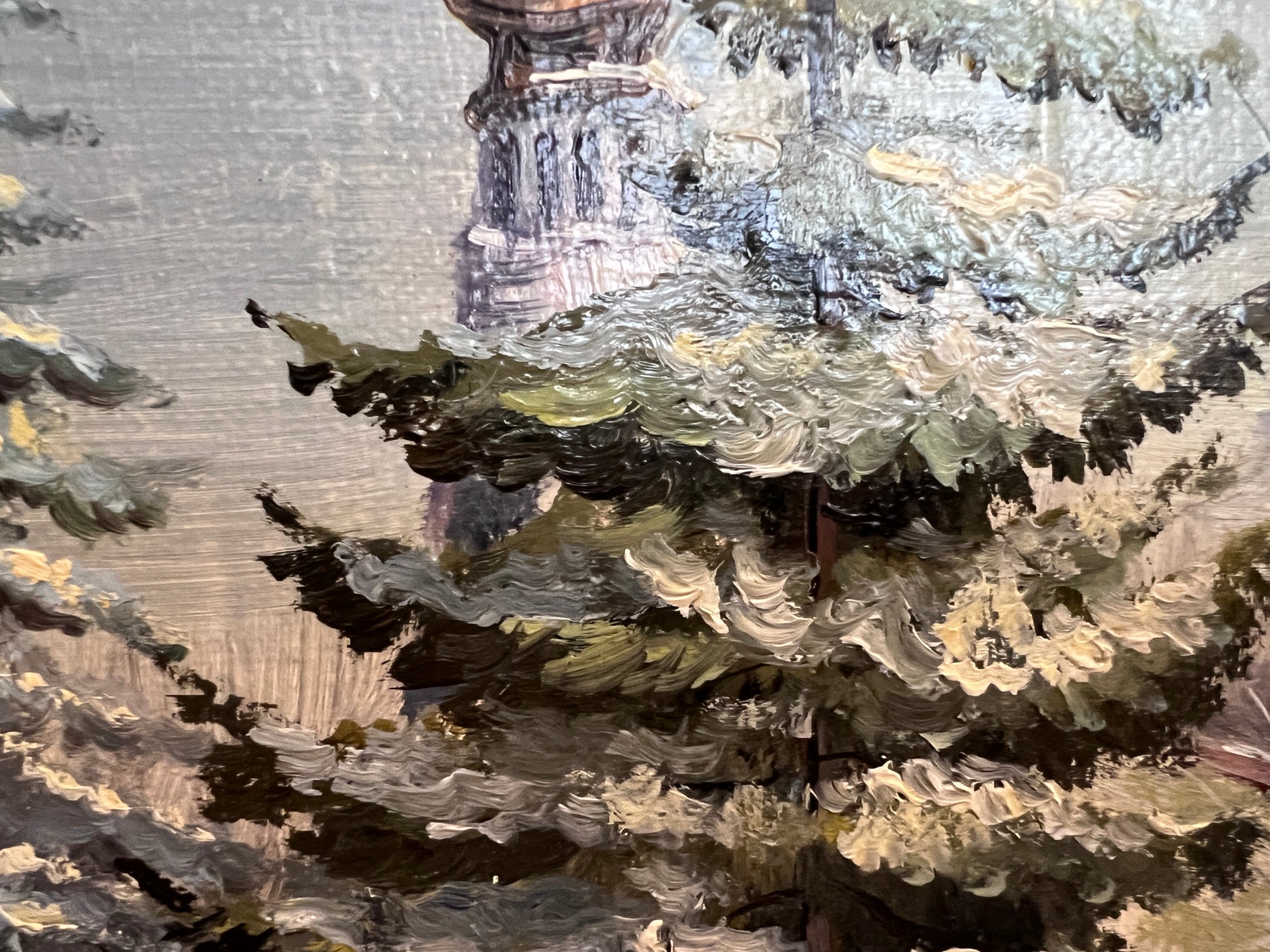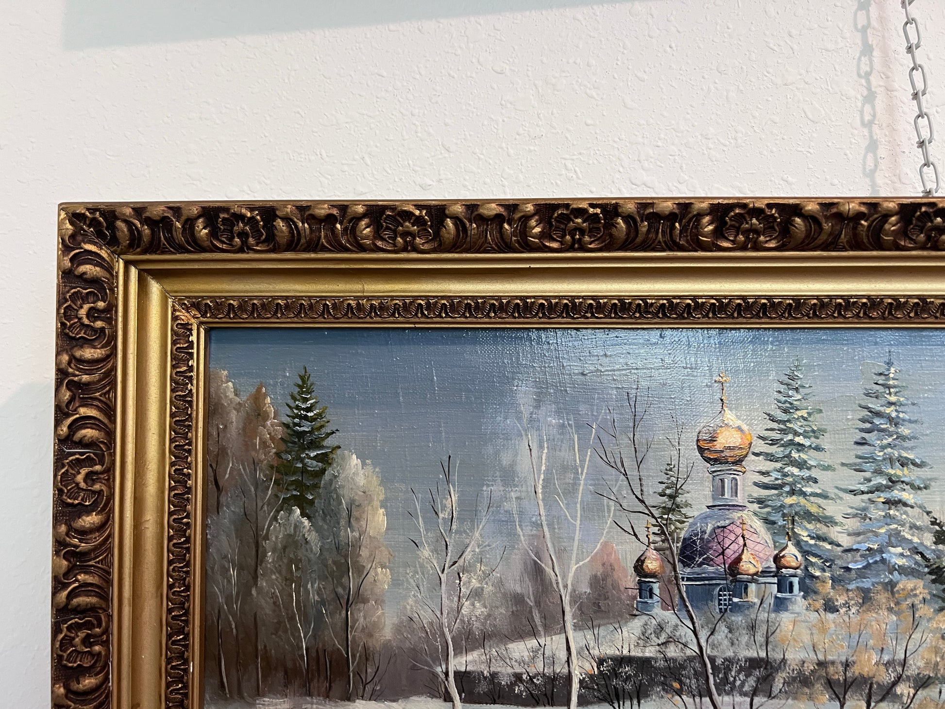 Oil Painting Winter Landscape with Russian Church –by Russian Artist Tresnevskiy