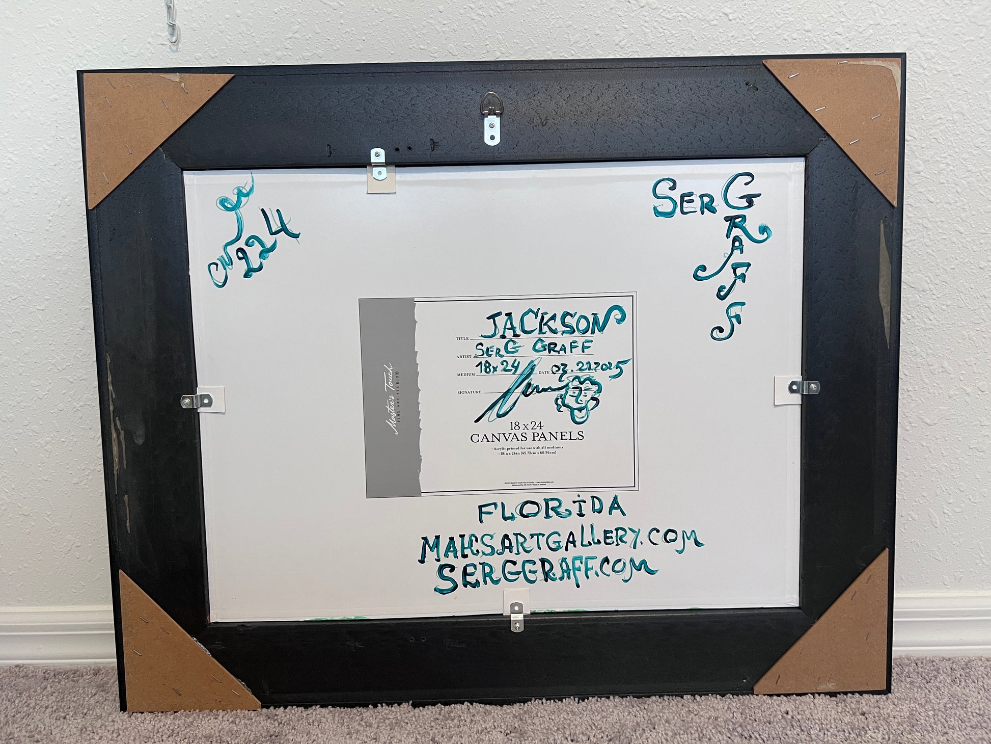 Bold, chaotic, and unapologetically unconventional, this artwork captures the mythos of Jackson through Graff’s unique outsider‑art style.