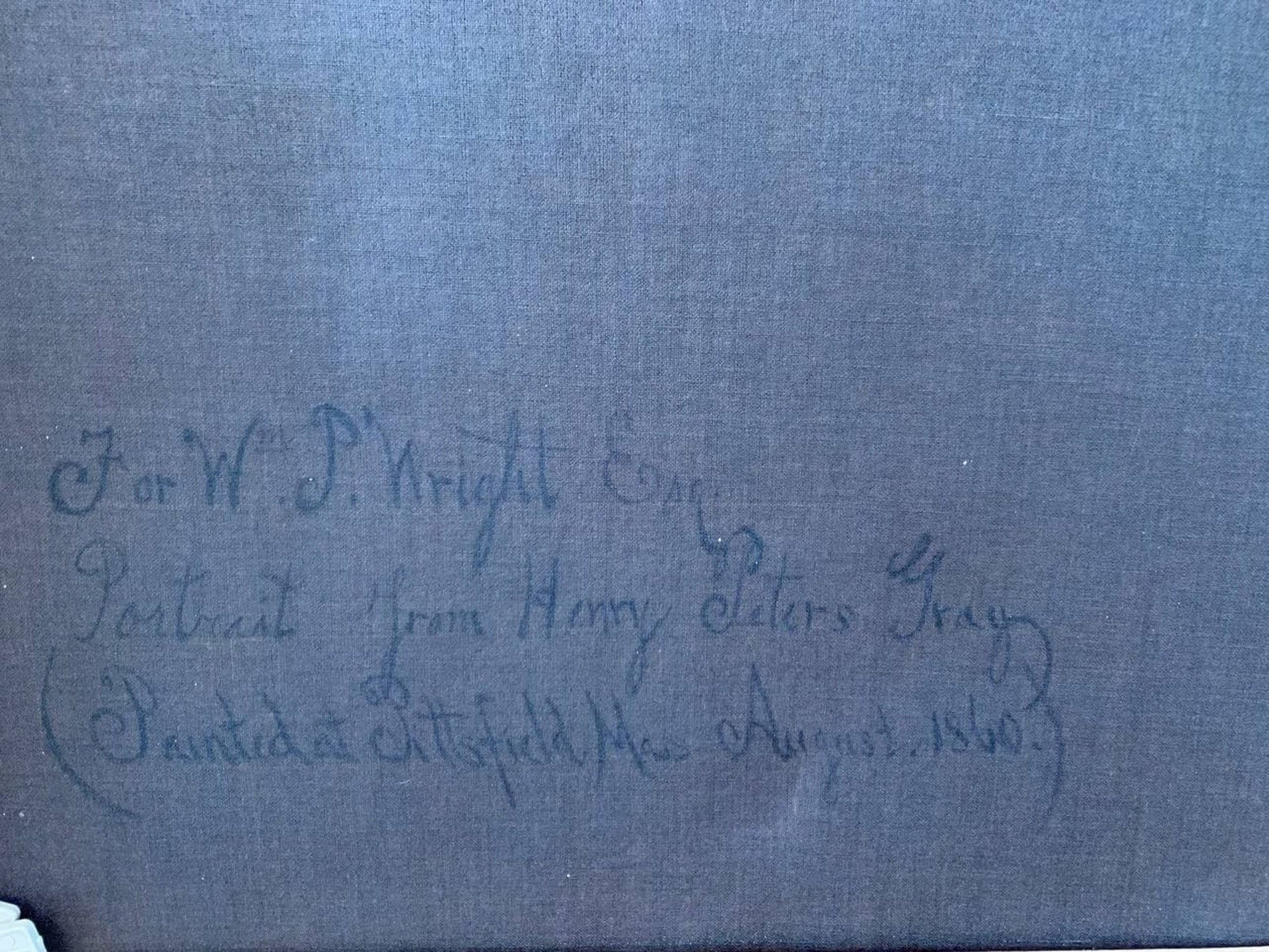 “For W.P. Wright Esq. Portrait from Henry Peters Gray. Painted at Pittsfield, MA, August 1860.”