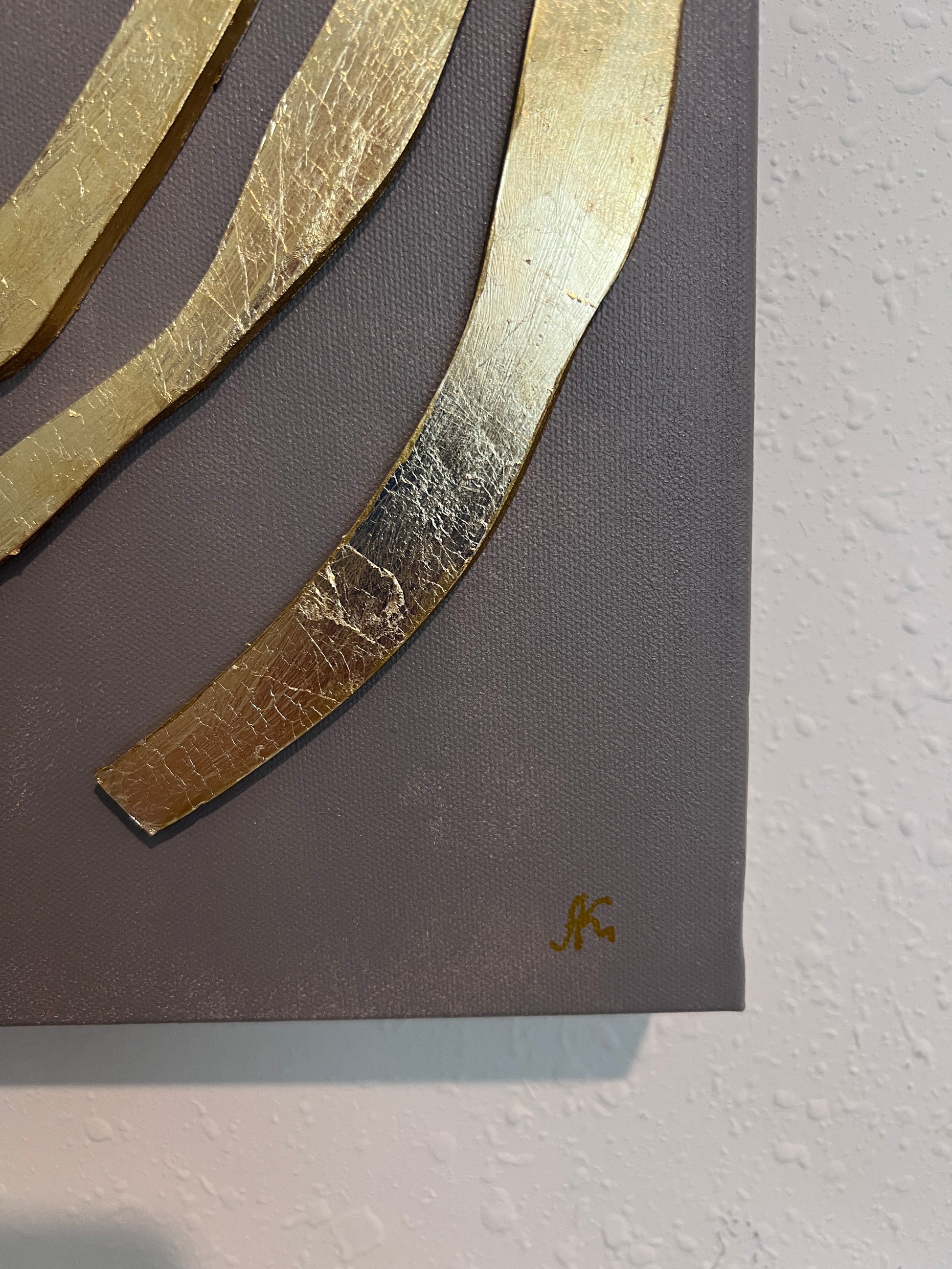 ✔️ Medium: Textured mixed media on canvas, gold leaf.