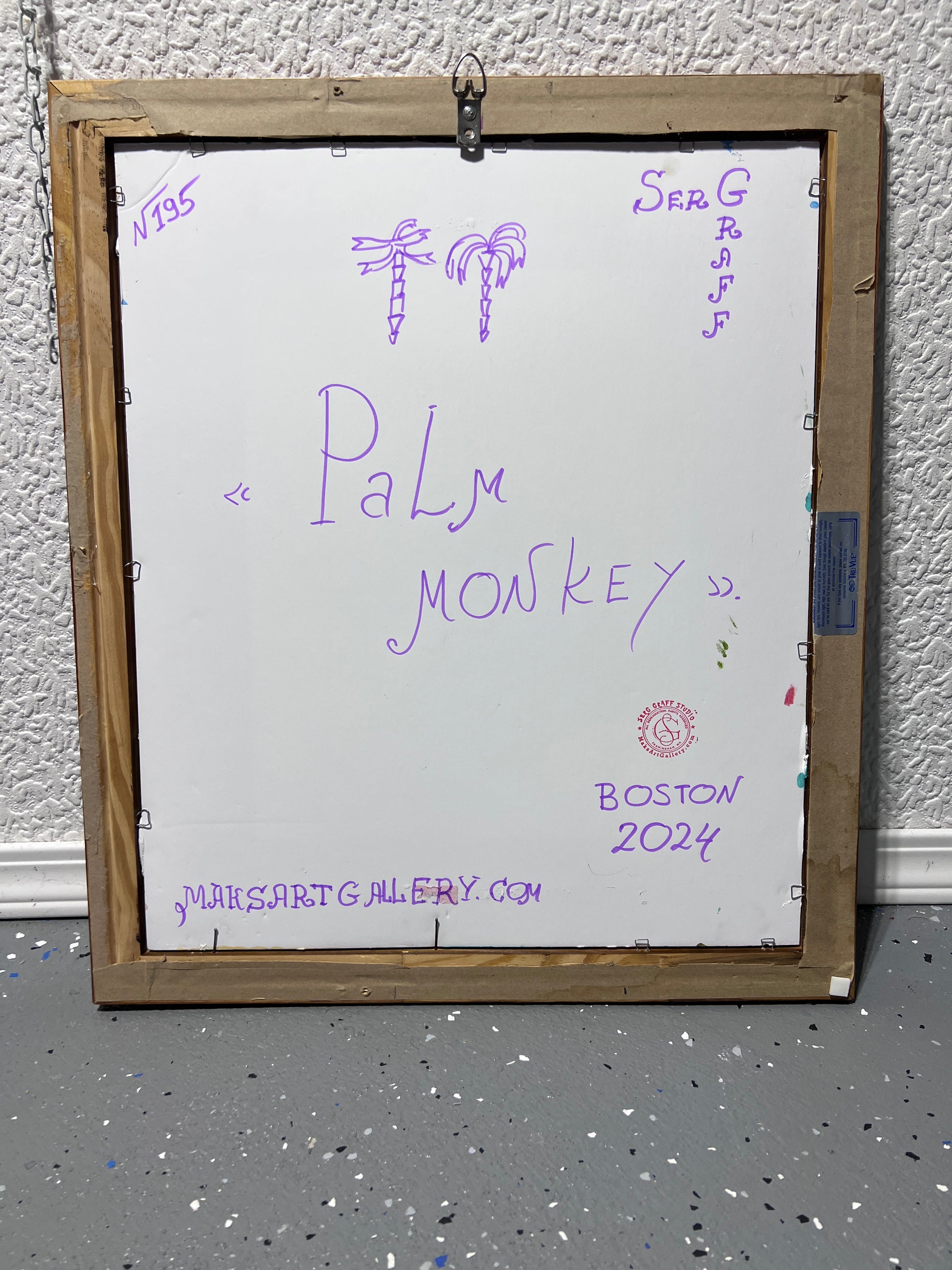 Original Abstract Painting on Board by Serg Graff "Palm Monkey", COA
