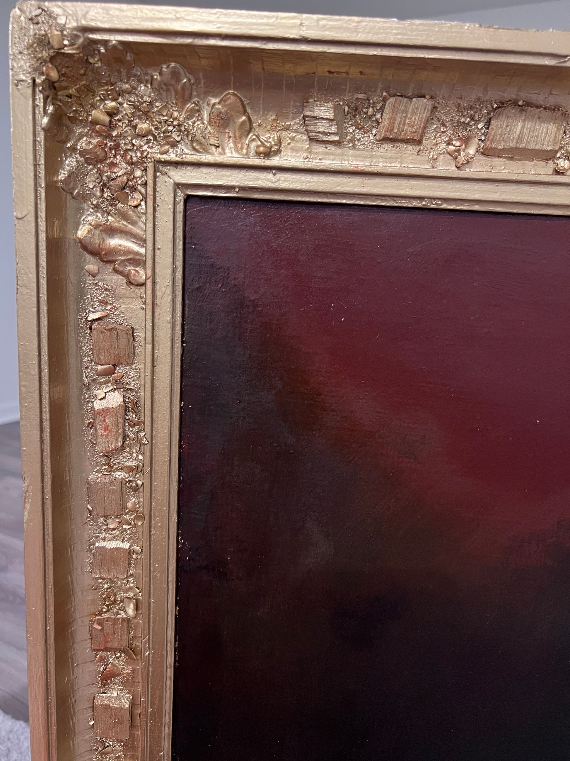 🖼️ Frame: The artwork is set in a vintage gilded wood frame.