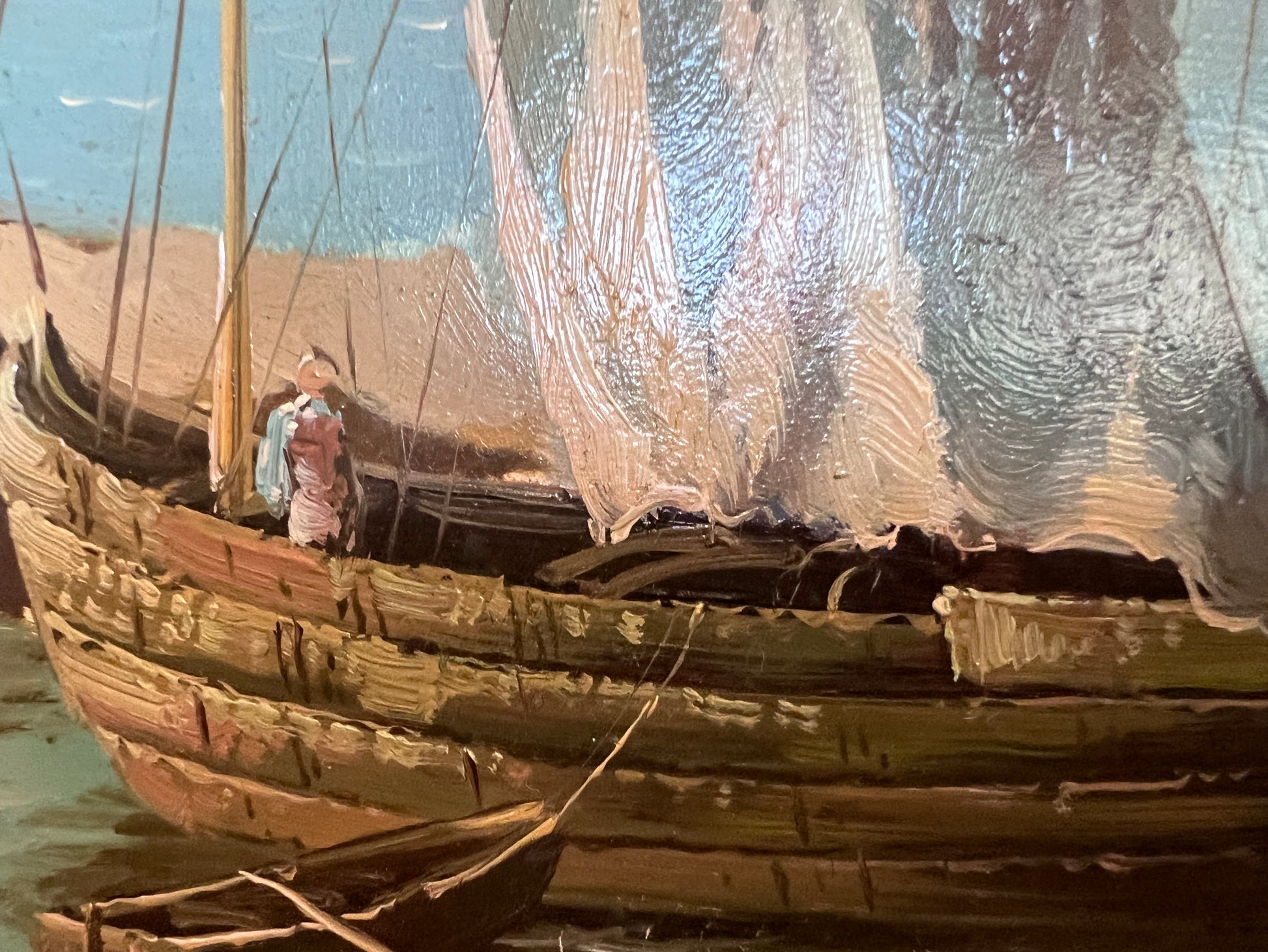 Original Antique Italian Venice Harbor Oil Painting on Board Signed K. Rossi