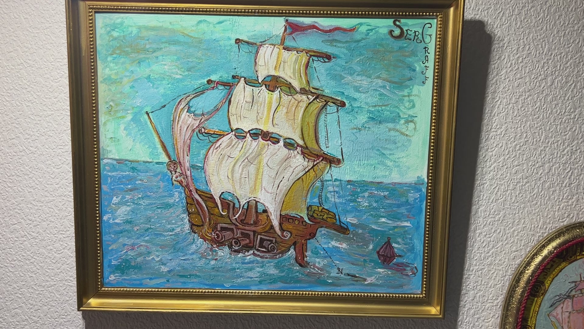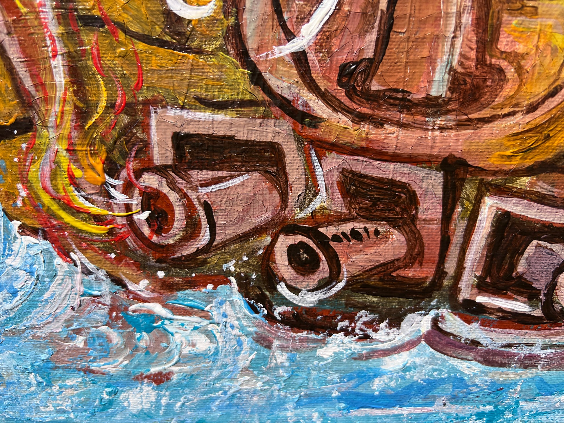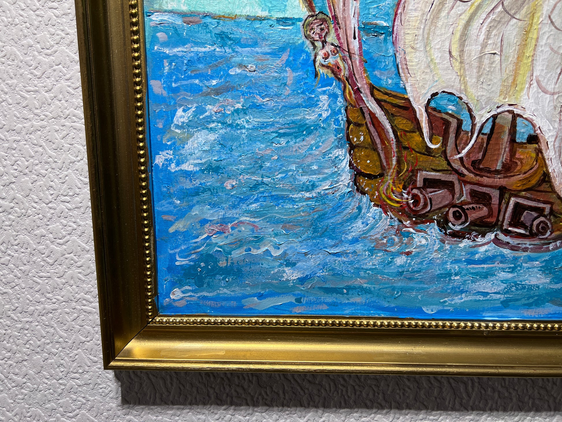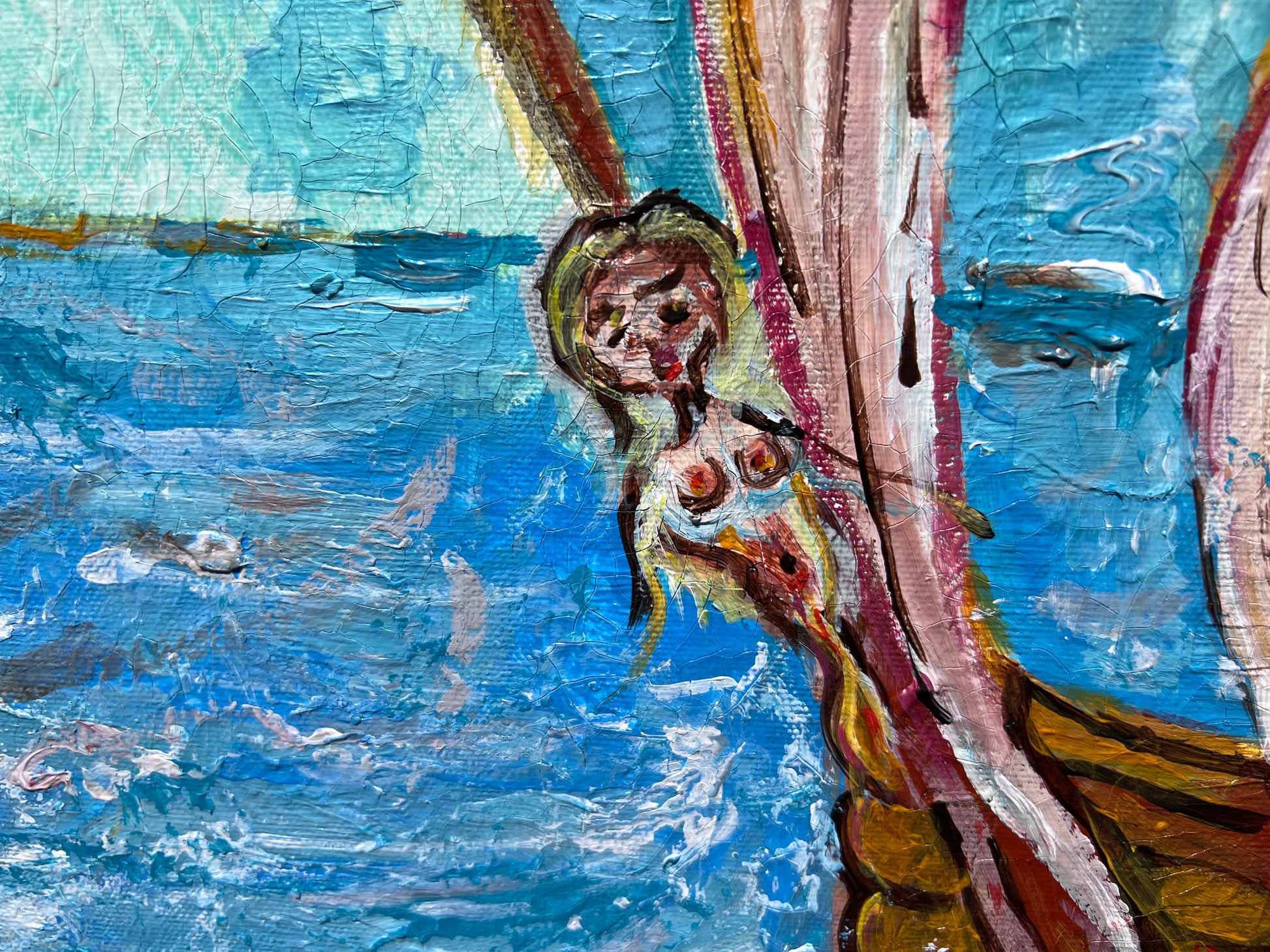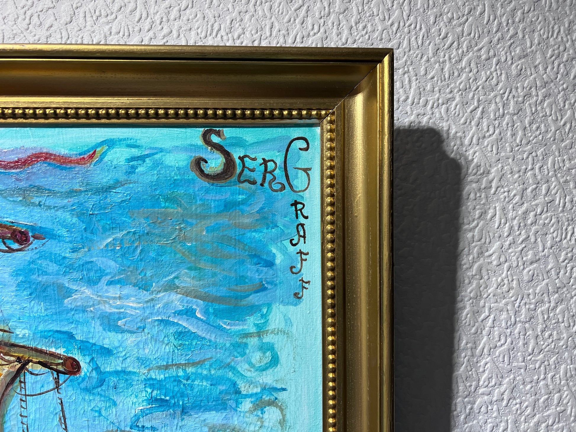 This is a unique original acrylic painting on canvas in a vivid maritime style by Serg Graff, titled “Skipper Sea Wolf.”