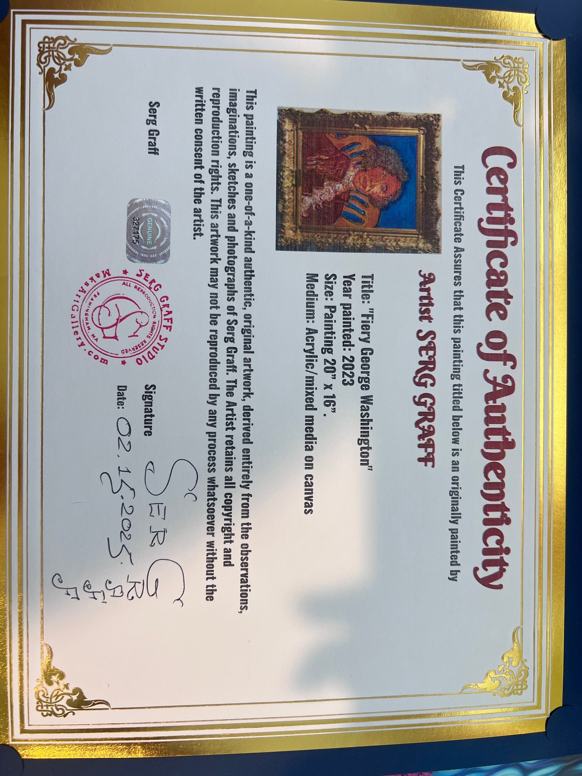 Original painting on canvas, "Fiery George Washington" by Serg Graff, COA