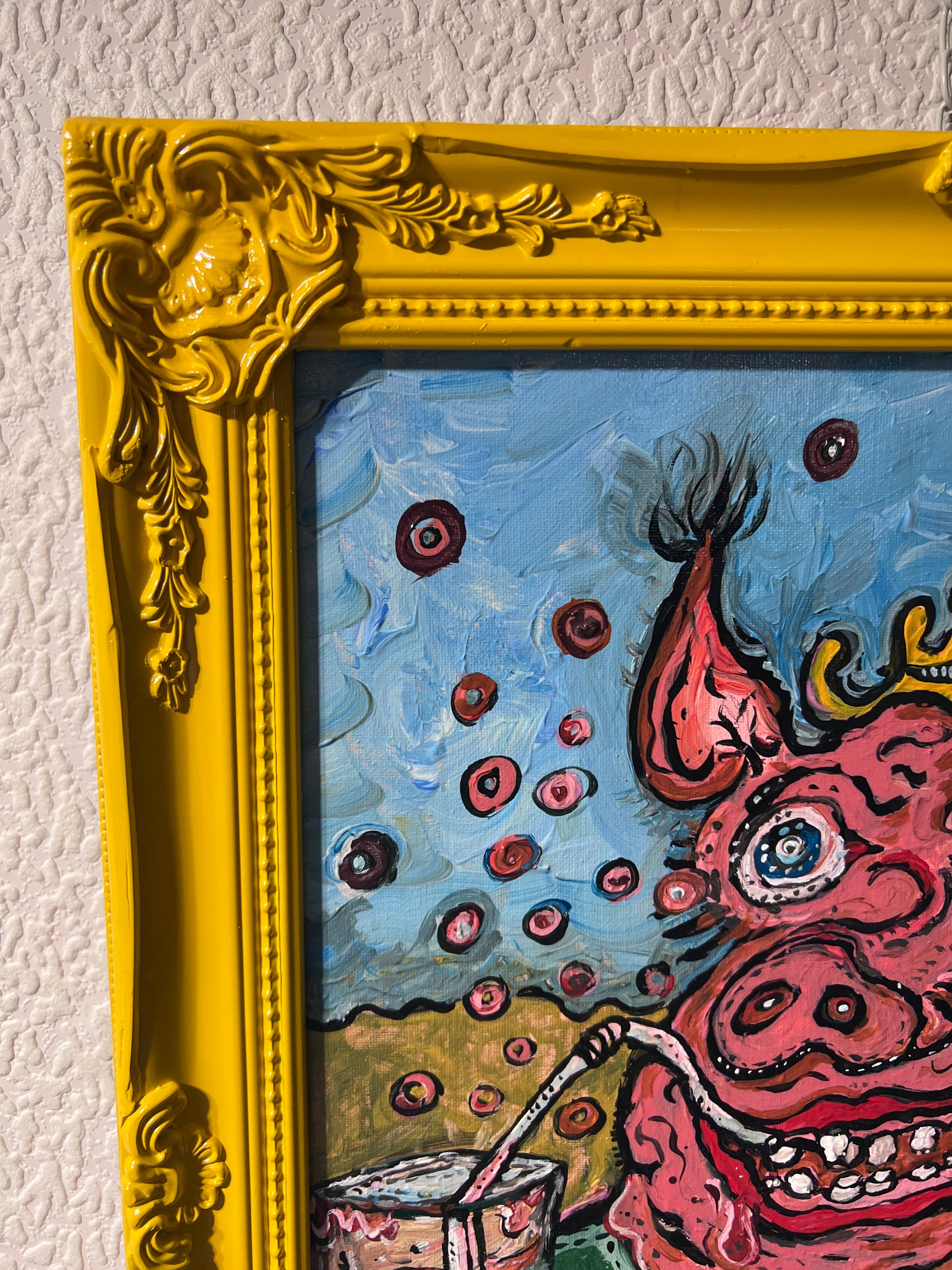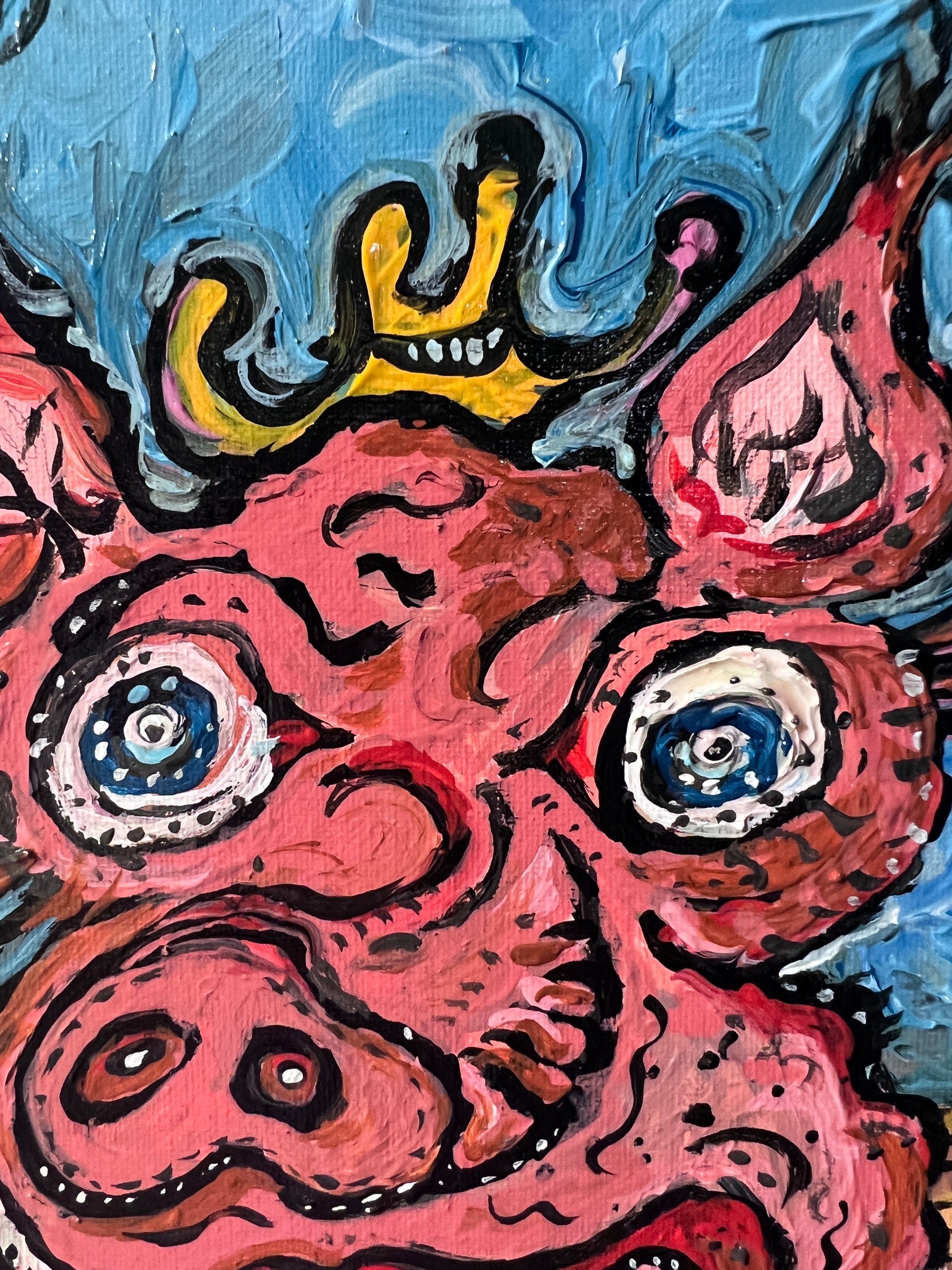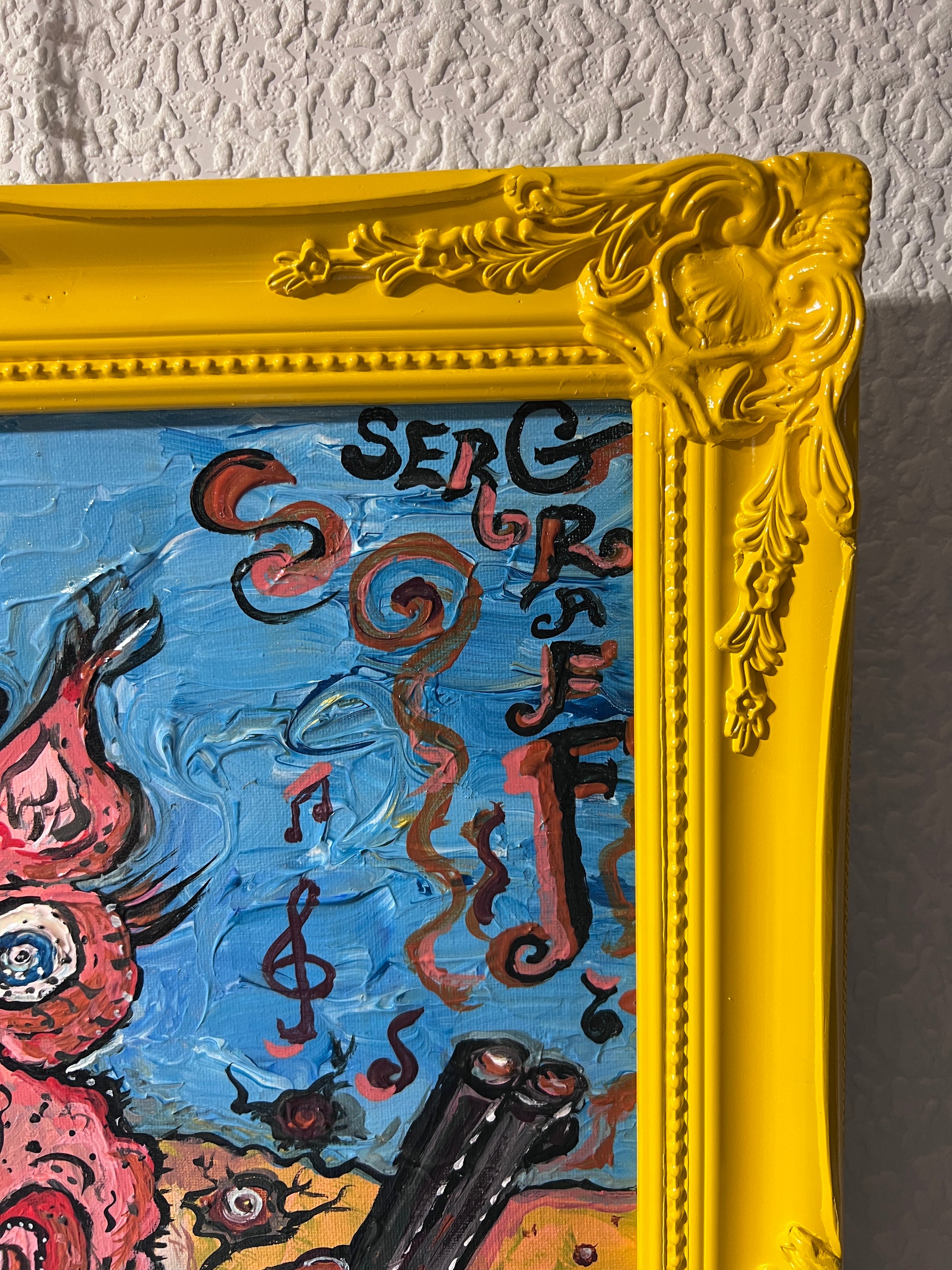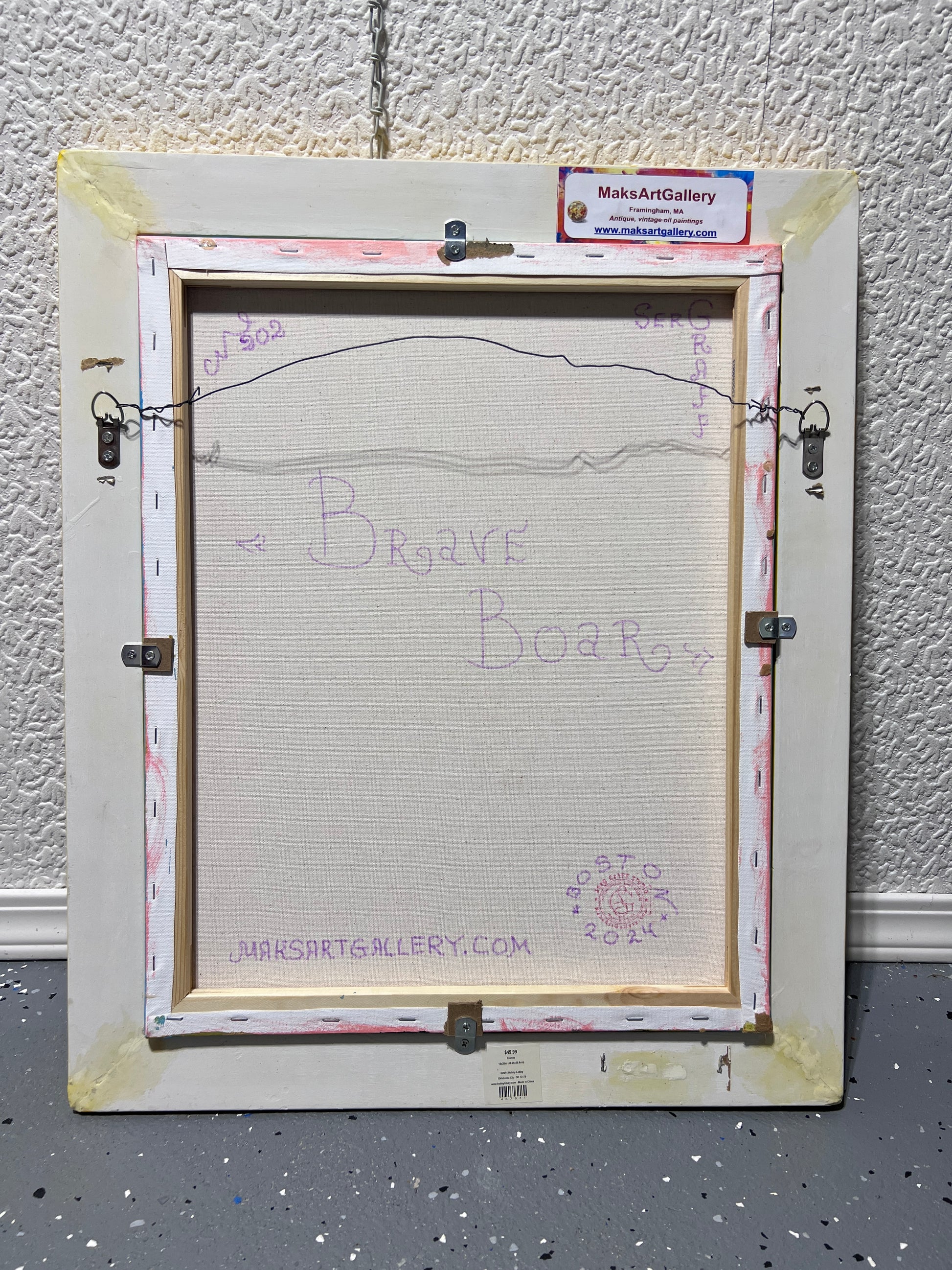 This is a unique original acrylic painting on canvas in a bold fantasy cartoon style by Serg Graff, titled “Brave Boar.”