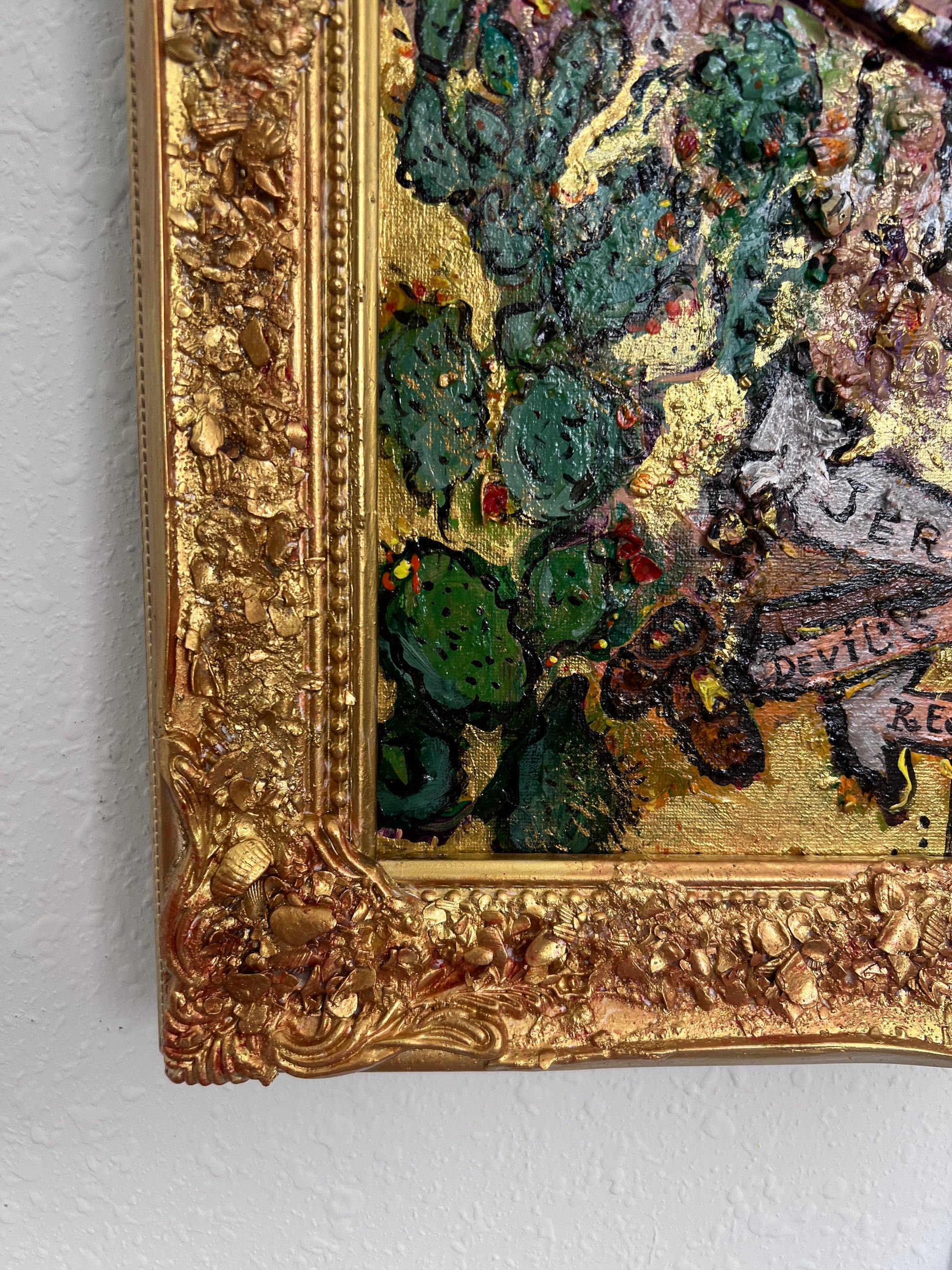 Presented in an elaborately hand‑decorated gold‑toned frame, this one‑of‑a‑kind piece is both a tribute to natural beauty and a portal into the artist’s imaginative universe.