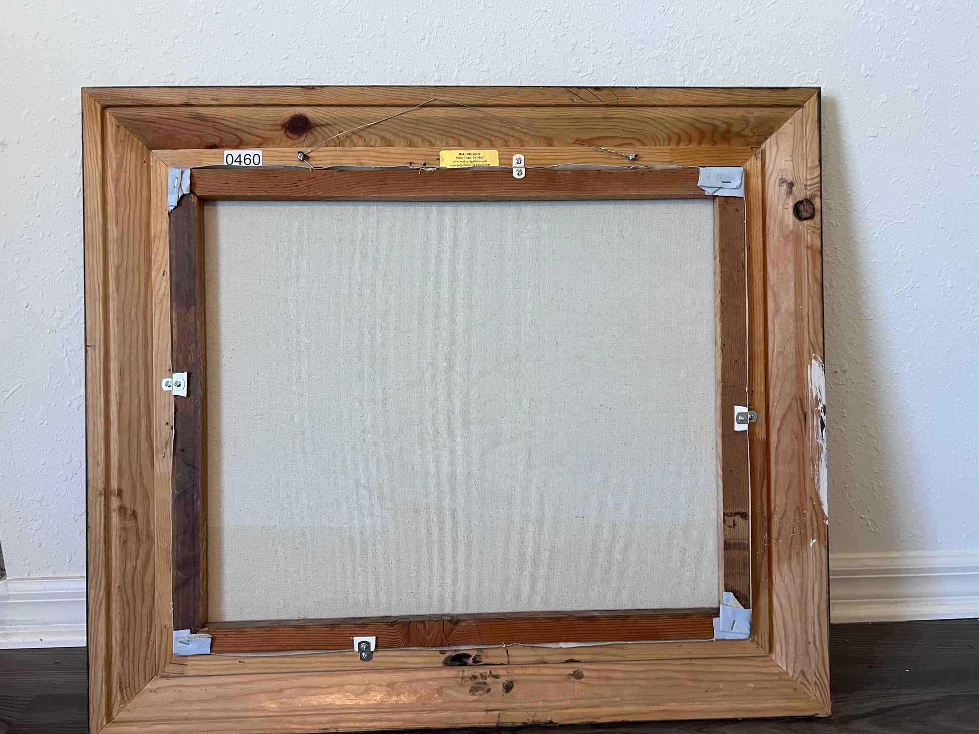 The artwork is an oil on canvas, presented in a richly carved wooden frame that enhances the classic maritime style.