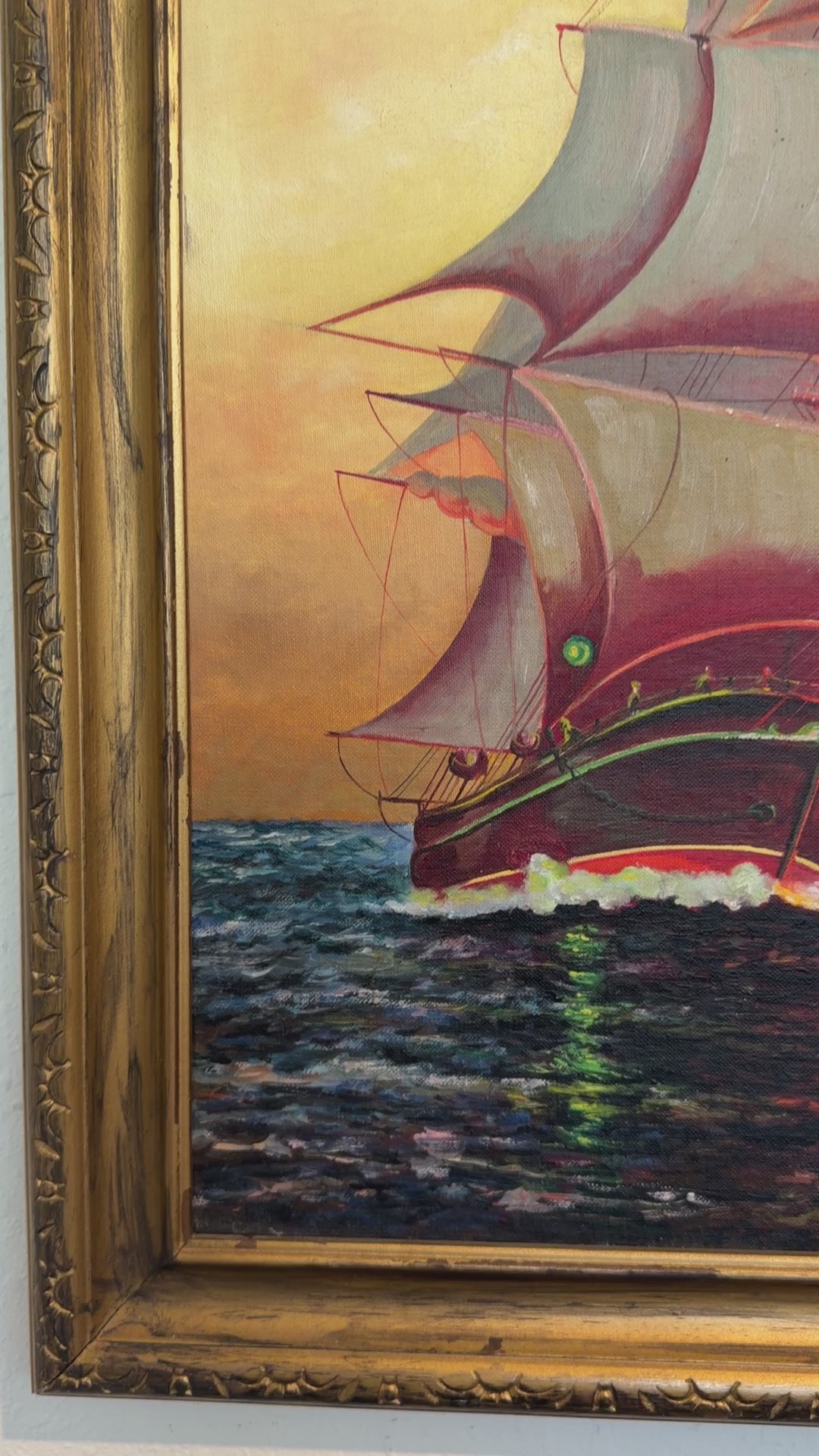 This painting is well suited for collectors of maritime art, mid-century interiors, or anyone seeking a dramatic nautical focal point with strong decorative presence.