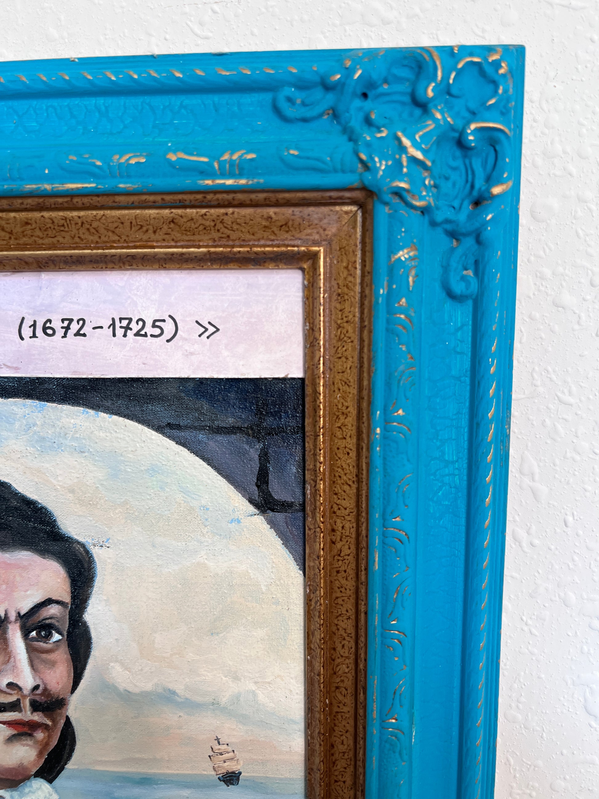 ✔️ Frame: Gilt inner border with decorative blue-painted wood frame