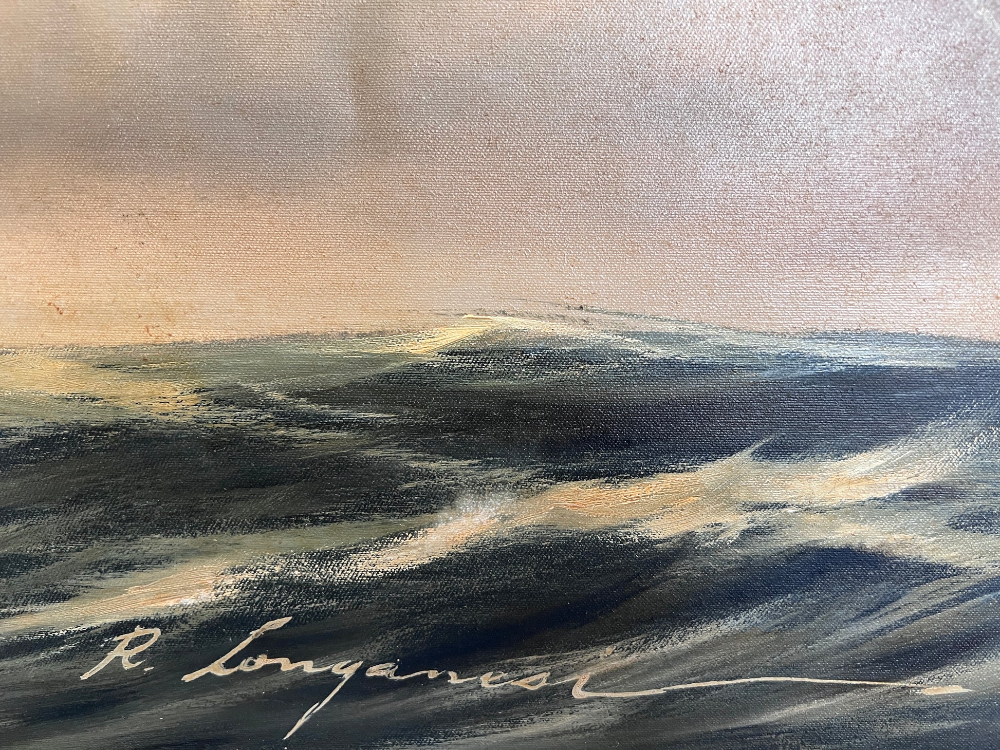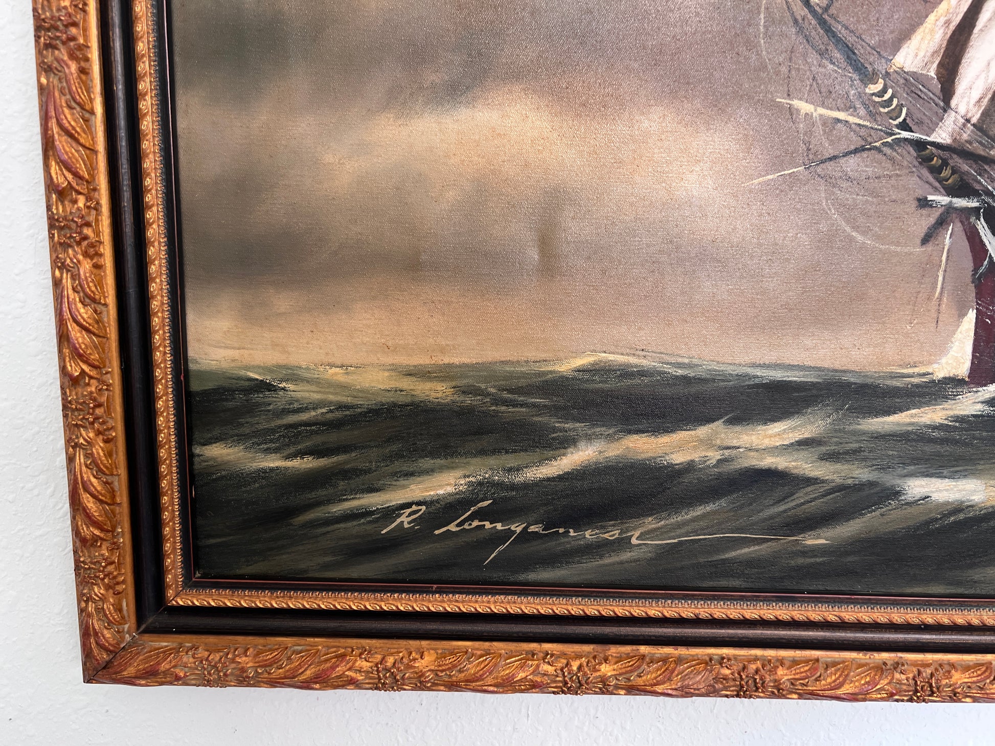 Renato Longanesi - Original Vintage Oil Painting Clipper Ship Stormy Sea Framed