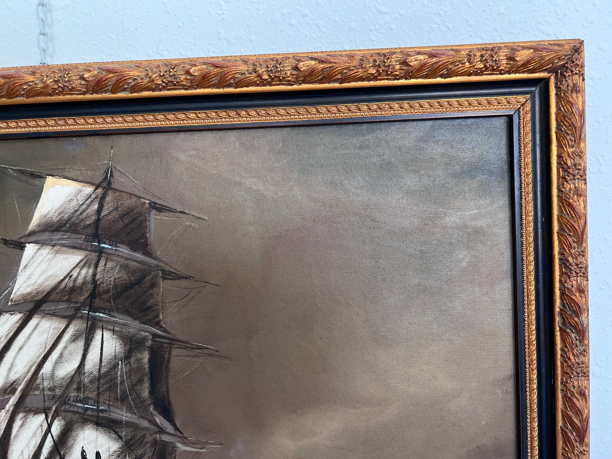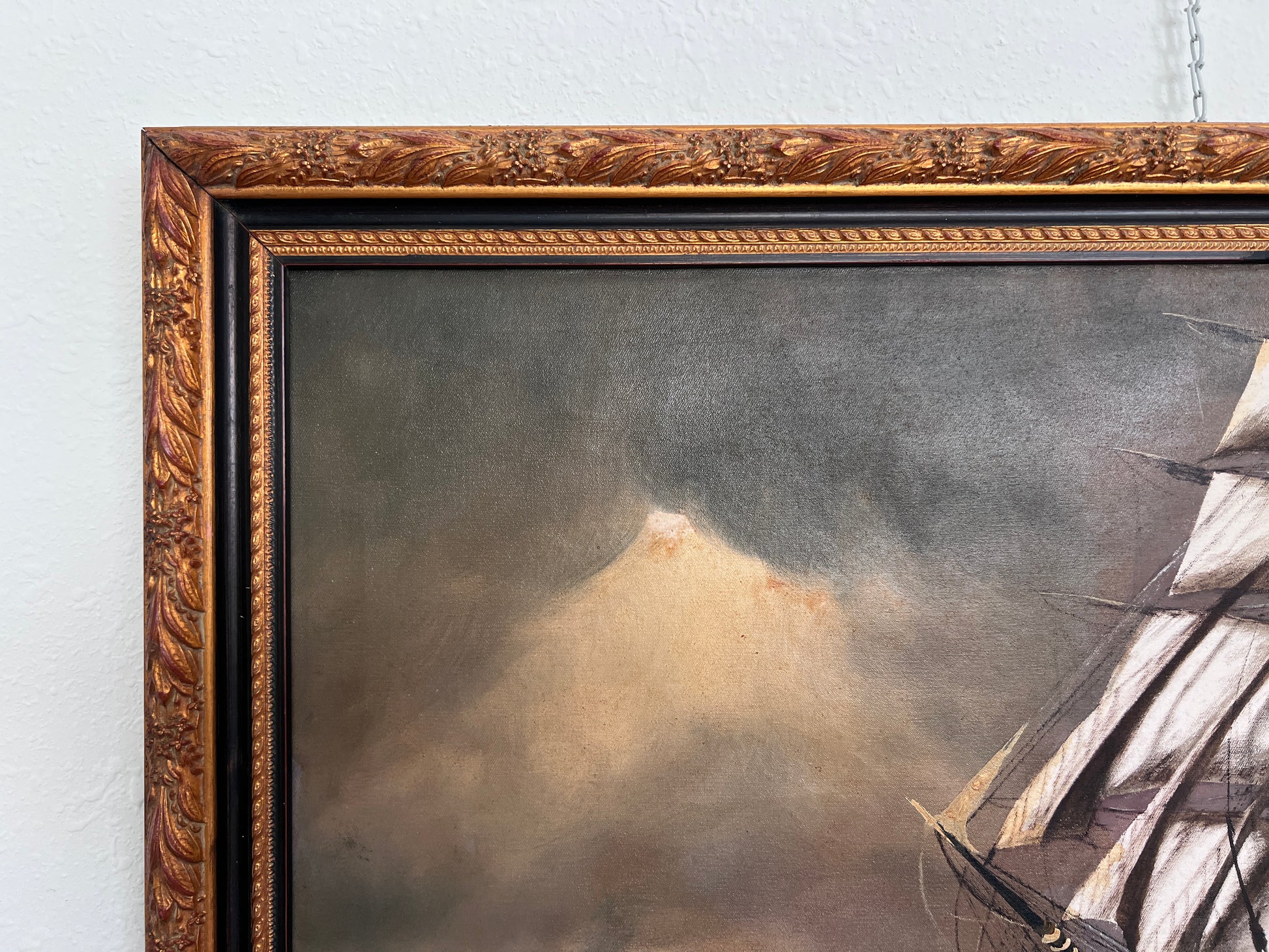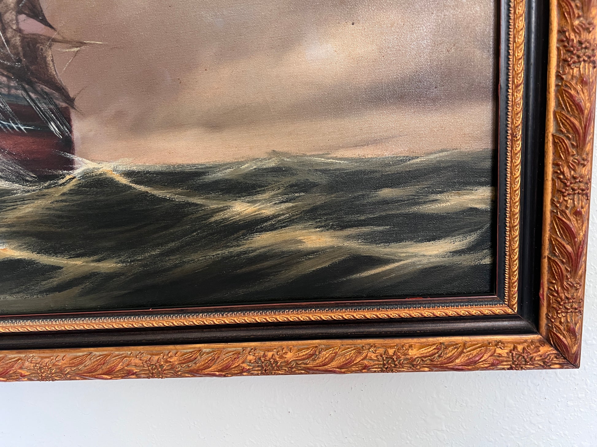 This dramatic maritime seascape evokes a cinematic sense of adventure — perfect for collectors of nautical art, vintage décor lovers, or anyone who appreciates the timeless romance of the sea.