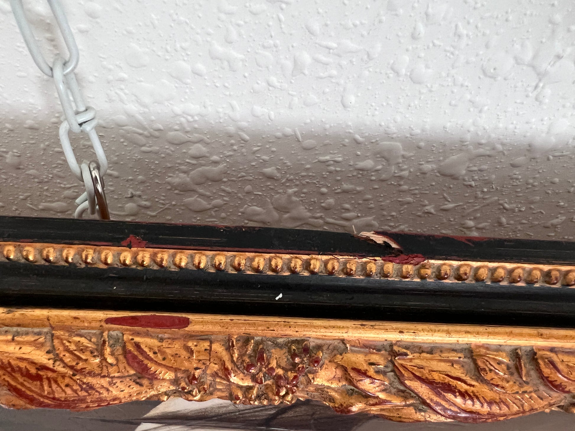 Frame:Â Ornate vintage frame, wood and gesso, gold with black inner beading