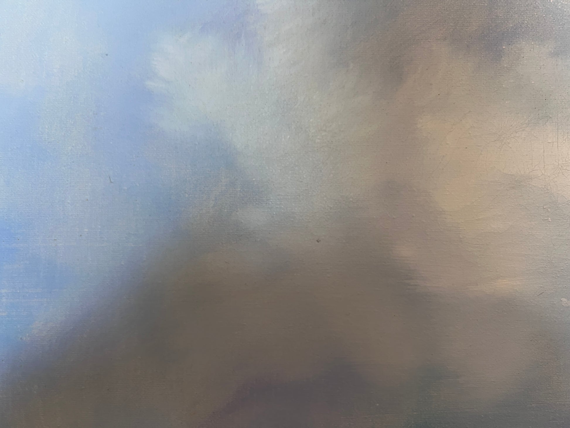 The luminous palette of whites and blues gives the composition a crisp, airy feeling, while the delicate detailing of seagulls and ship rigging showcases the artist’s technical finesse. This piece would make a refined centerpiece for any coastal, nautical, or classic interior design.
